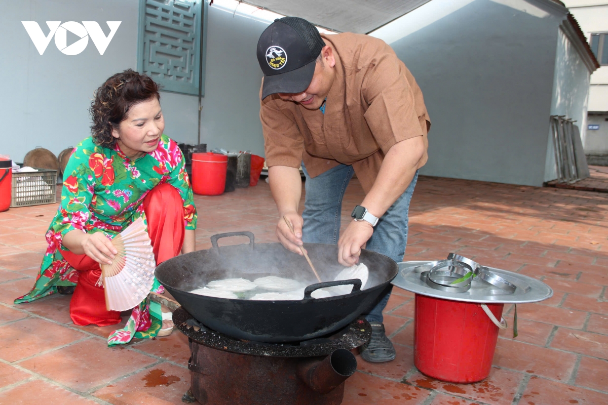 Giữa không gian thơm mùi thịt quyện cùng gia vị, du khách Nguyễn Thị Ngoan (Yên Hòa, Hà Nội) chăm chú quan sát, thử luộc sơ mẻ giò đầu tiên dưới sự hướng dẫn của anh Vũ Văn Linh (chủ cơ sở giò chả Ngọc Yến, thôn Ước Lễ) trước khi chiên. “Được trực tiếp tìm hiểu, trải nghiệm mới hiểu vì sao giò chả Ước Lễ nổi tiếng đến vậy”, bà Ngoan bày tỏ.