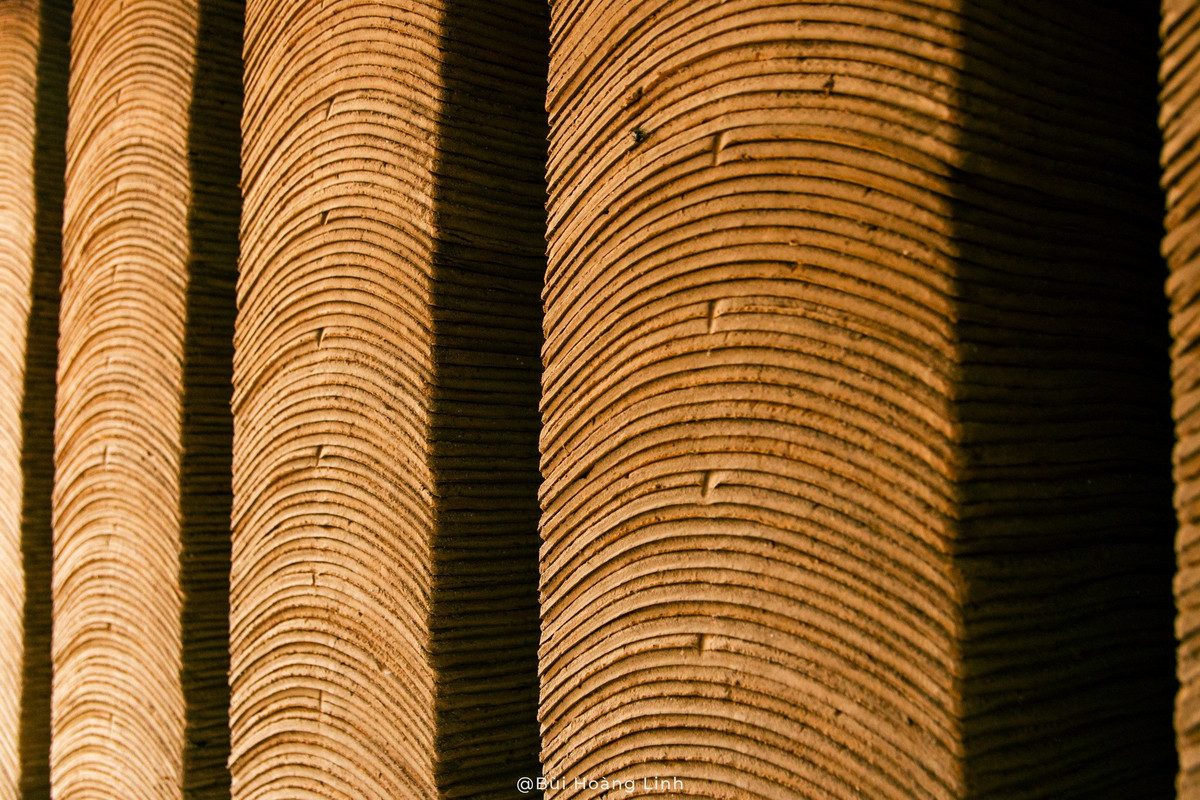 Bên trong, hàng ngàn viên ngói máng thô mộc xếp ngay ngắn, chờ đến lượt được đưa vào lò nung. Ảnh Bùi Hoàng Linh