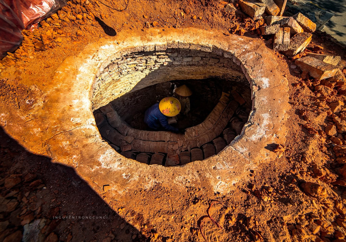 Mỗi lò có thể chứa hàng chục ngàn viên ngói và được nung liên tục trong 10 ngày 10 đêm bằng củi rừng – thứ nhiên liệu tạo nên màu đỏ au đặc trưng của ngói Bắc Sơn. Cường độ lửa, thời gian và kinh nghiệm của người thợ quyết định độ bền, độ cong và màu sắc của từng viên ngói. Ảnh Bùi Hoàng Linh