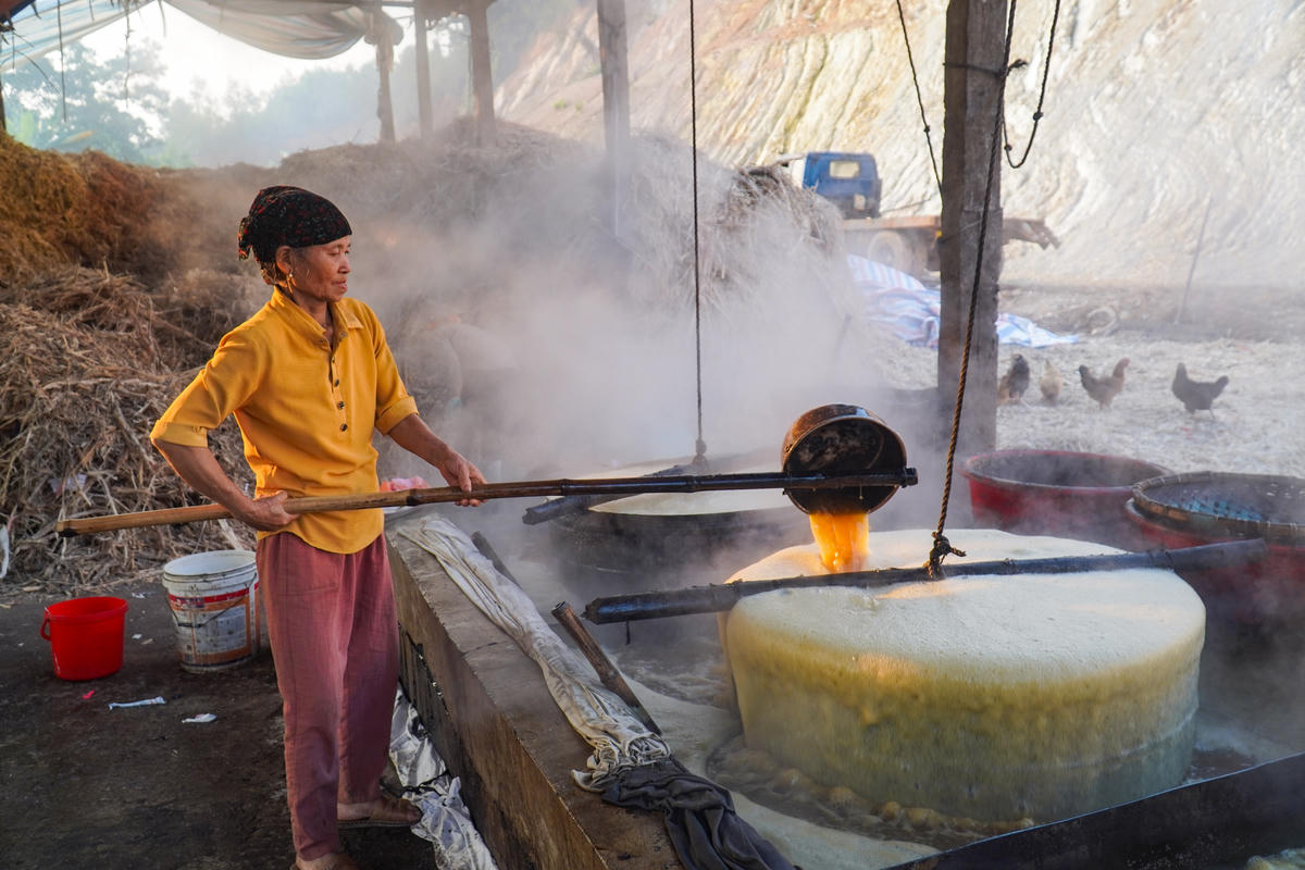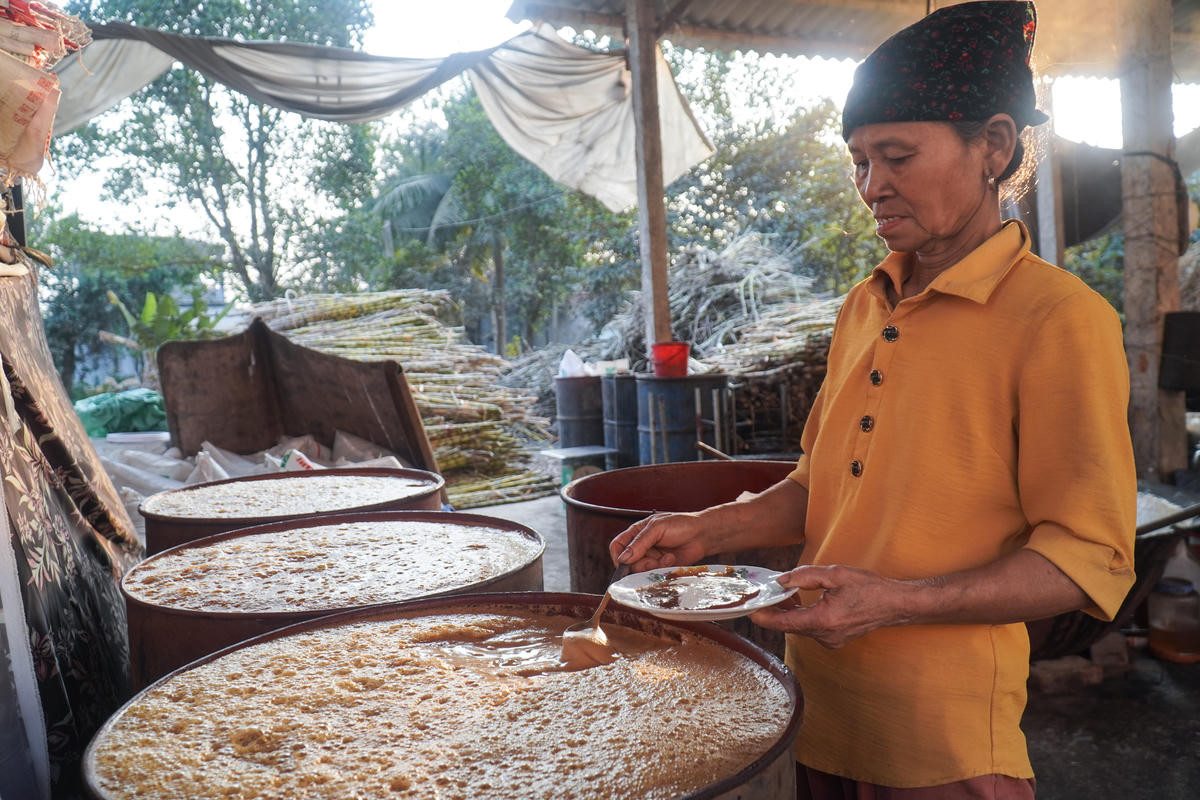 Theo người dân địa phương, việc duy trì làng nghề không chỉ góp phần tiêu thụ mía nguyên liệu cho nông dân mà còn tạo việc làm, tăng thu nhập cho các hộ dân trong thời gian nông nhàn. Ảnh: Đình Minh