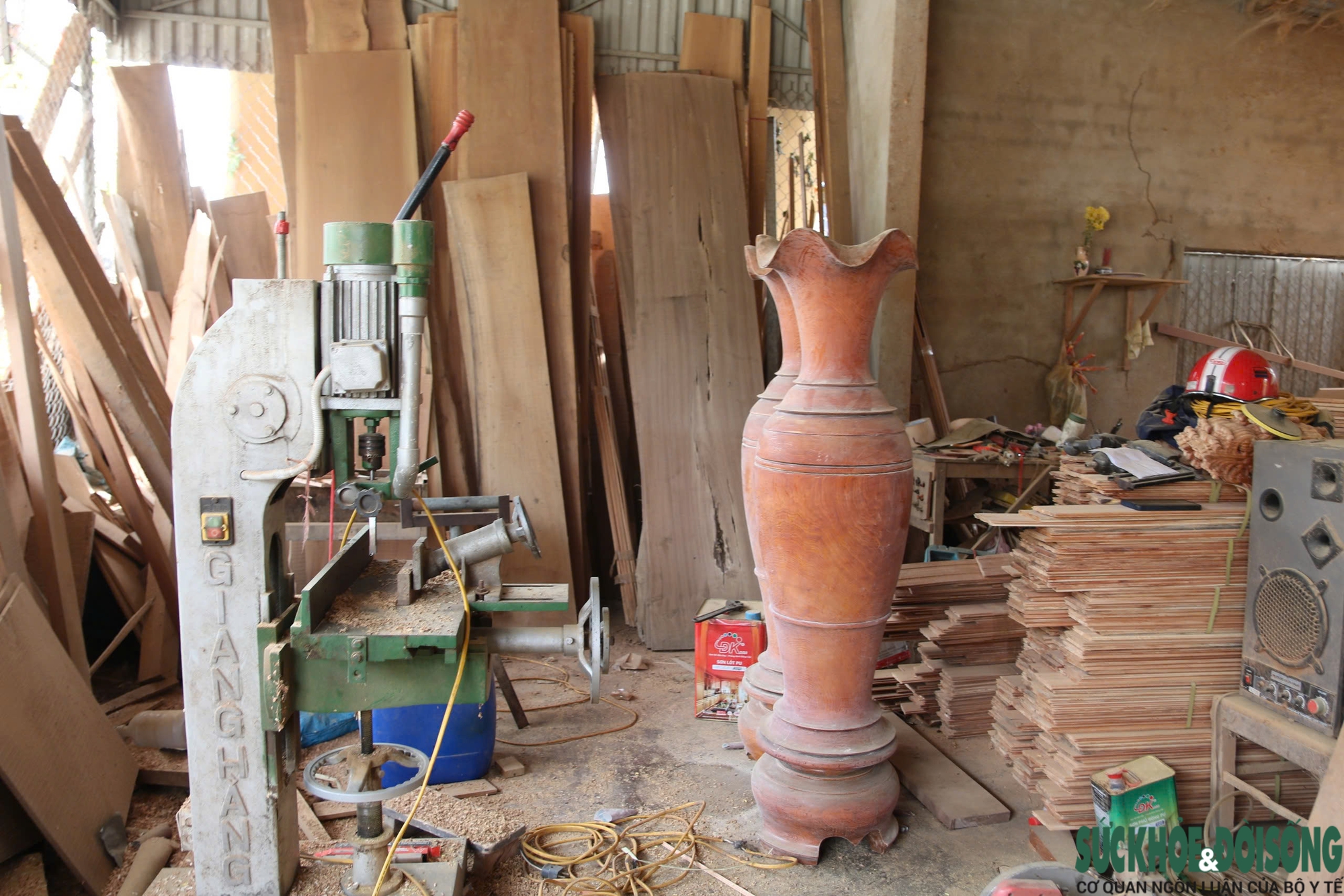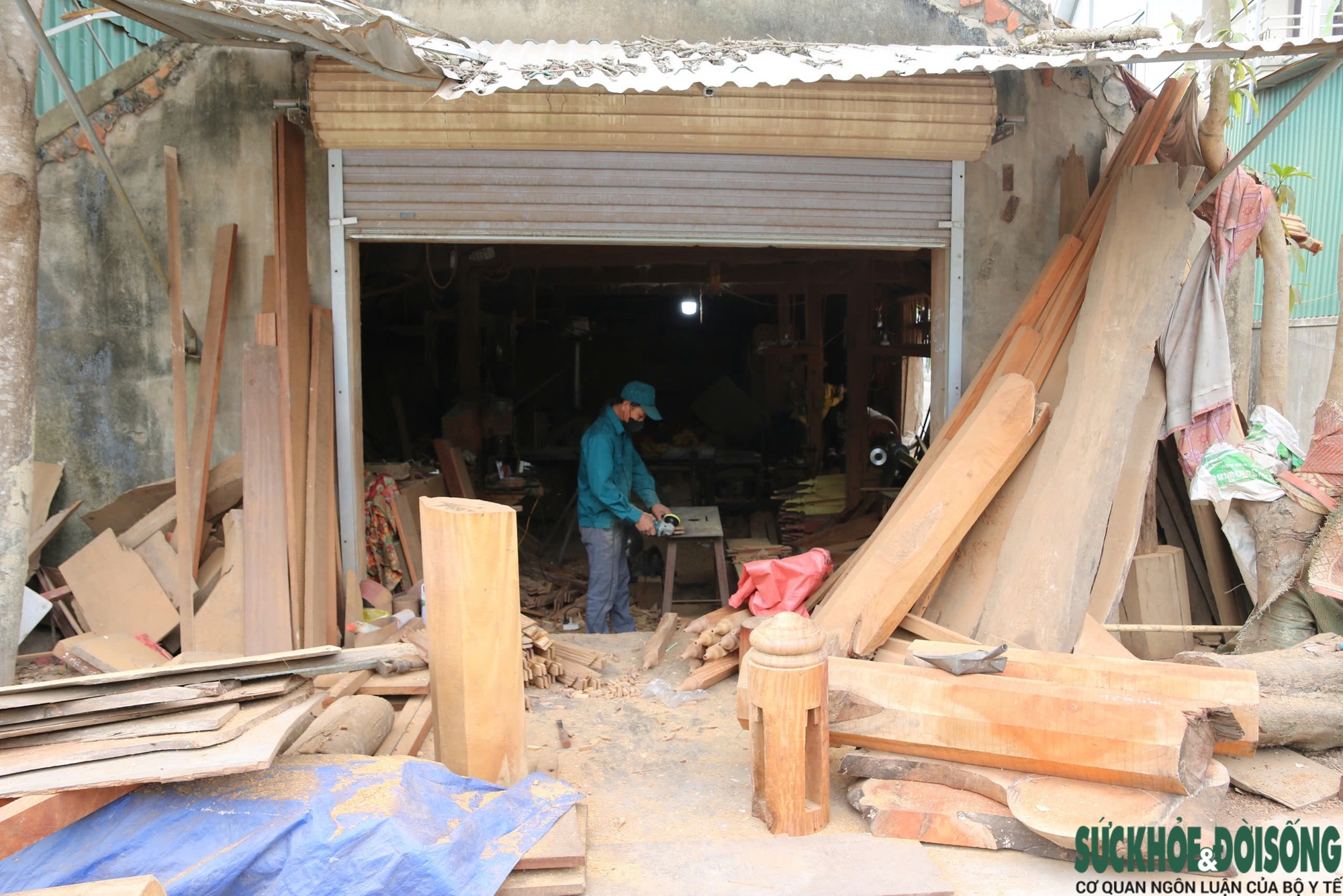 Những ngày giáp Tết, các xưởng mộc ở làng nghề Tiền Phong hoạt động hết công suất để kịp giao hàng cho khách. Gỗ nguyên liệu được tập kết dọc lối vào làng nghề, sẵn sàng cho cao điểm sản xuất phục vụ Tết.