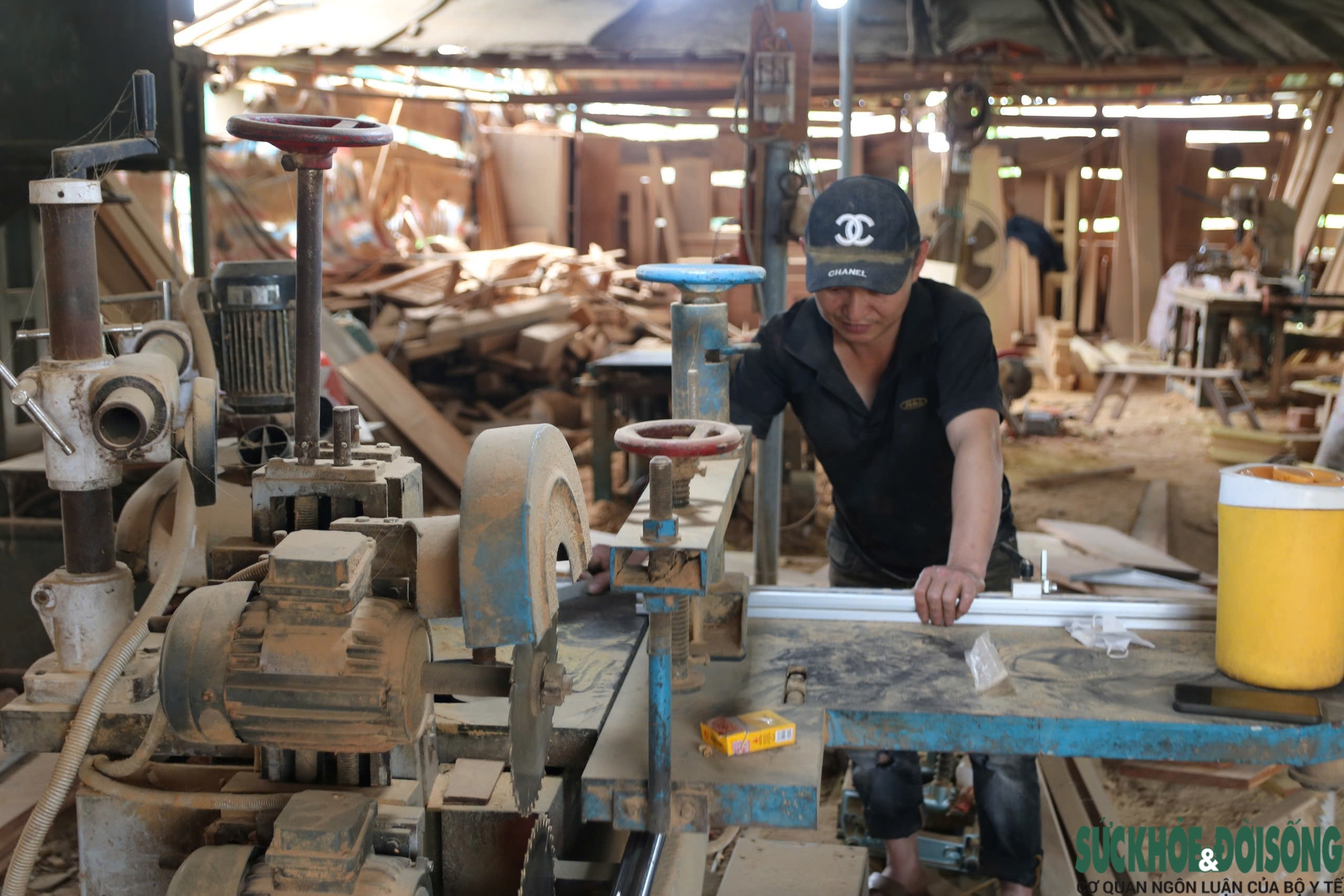 Thợ mộc tất bật gia công cửa gỗ, bàn ghế, giường tủ, những mặt hàng tiêu thụ mạnh vào dịp cuối năm.