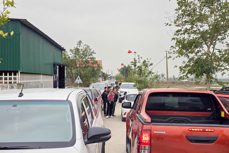 Từ sáng sớm đến chiều tối, hàng loạt ô tô nối đuôi đi vào các tuyến đường làng, khiến không gian vốn yên bình trở nên chật kín, náo nhiệt khác thường. Tại nhiều khu đất trống, các nhóm môi giới bất động sản tụ tập, thậm chí đốt lửa sưởi ấm, chờ khách đến chốt đất giữa thời tiết giá lạnh.