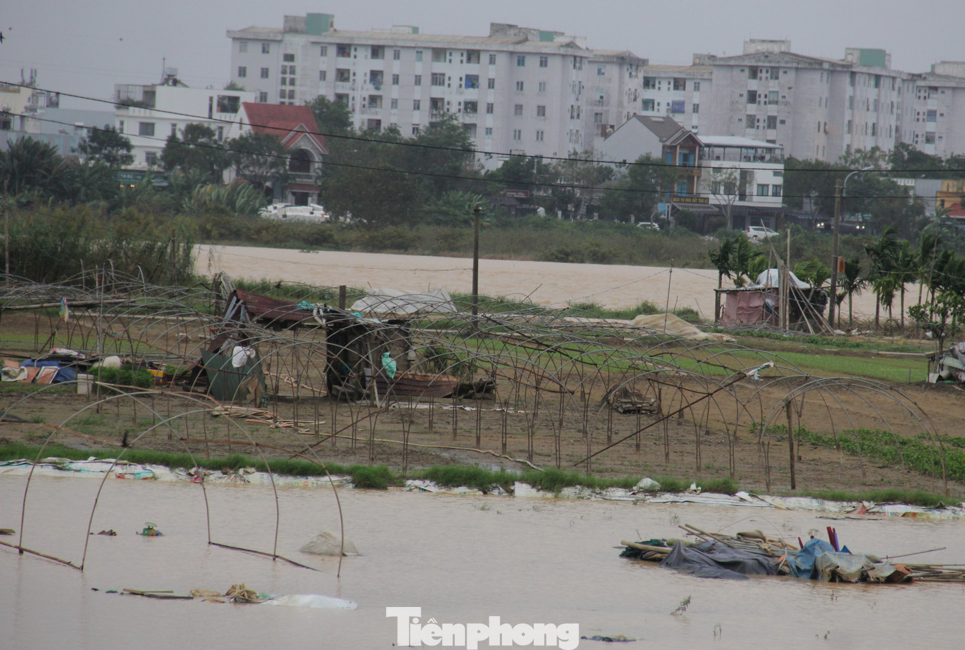 Vùng trồng rau an toàn La Hường ven sông Cẩm Lệ (phường Cẩm Lệ) bị nước bủa vây, nhiều đoạn không còn thấy màu xanh của rau nữa. Ảnh: Thanh Hiền.