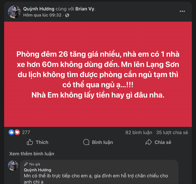 Trên các hội nhóm mạng xã hội của người dân địa phương, không ít bài đăng xuất hiện với nội dung giản dị: "Nhà còn chỗ ngủ, ai chưa có phòng có thể qua nghỉ tạm".