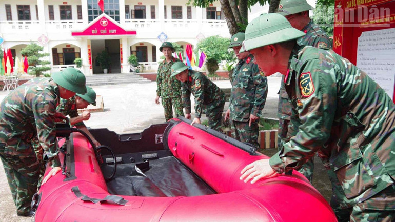 Ban Chỉ huy Phòng thủ khu vực 2, Bắc Sơn, tỉnh Lạng Sơn kiểm tra vật chất phục vụ công tác phòng chống bão lũ. (Ảnh: Dương Nguyên)