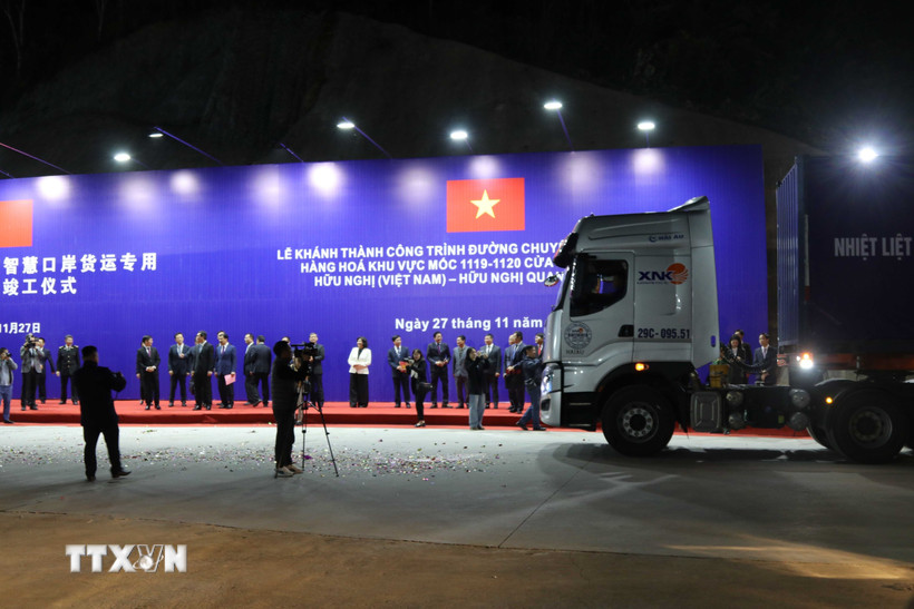 Chiều 27/11, tại Km0 - đường chuyên dụng vận chuyển hàng hóa khu vực mốc 1119-1120 cửa khẩu quốc tế Hữu Nghị (Việt Nam) - Hữu Nghị Quan (Trung Quốc), Ủy ban Nhân dân tỉnh Lạng Sơn phối hợp cùng Chính quyền nhân dân khu tự trị dân tộc Choang Quảng Tây, Trung Quốc tổ chức Lễ khánh thành công trình đường chuyên dụng vận chuyển hàng hóa khu vực mốc 1119-1120 thuộc mô hình cửa khẩu thông minh Hữu Nghị (Việt Nam) - Hữu Nghị Quan (Trung Quốc).