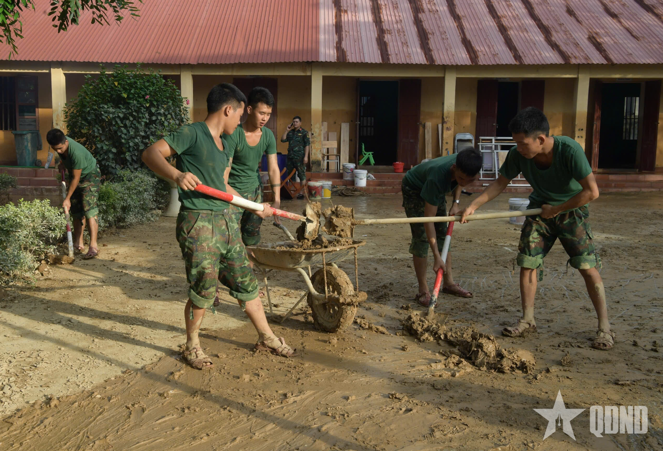 Cùng với đó, Trung đoàn 12, Sư đoàn 3, Quân khu 1 phối hợp với các lực lượng tại chỗ tổng dọn vệ sinh, khơi thông cống rãnh, bảo đảm giao thông thông suốt, giúp học sinh sớm đi học trở lại.