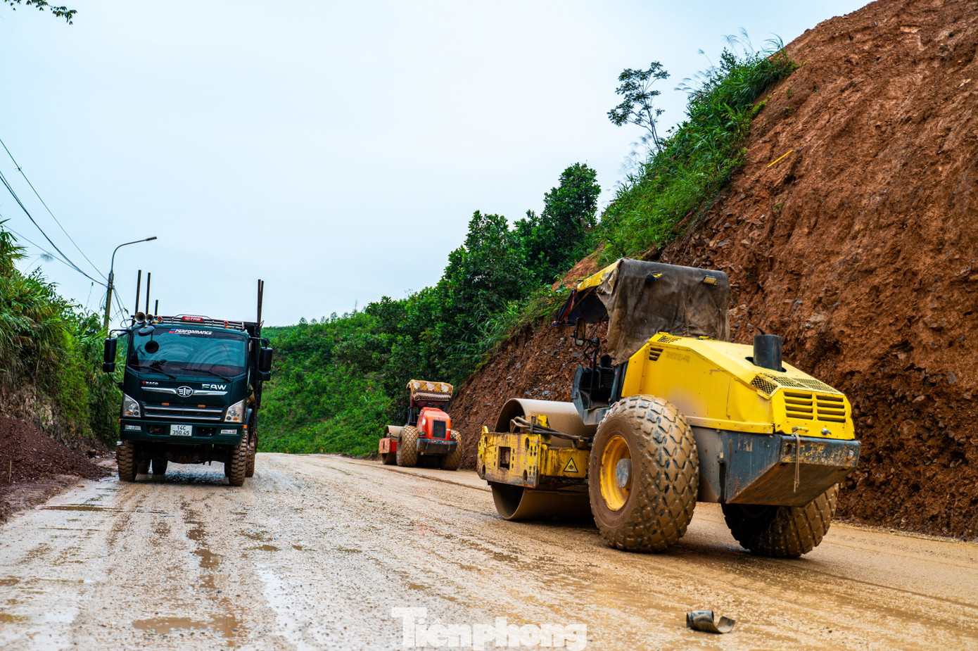 Ghi nhận của phóng viên Báo Tiền Phong, trên dọc tuyến đường, một số vị trí vẫn tiến hành công tác phá núi, mở rộng mặt đường và đắp nền.Một số đoạn đã cơ bản mở rộng, hoàn thiện nền đường và trải thảm, hiện đang chờ lắp các công trình phụ trợ của tuyến đường.