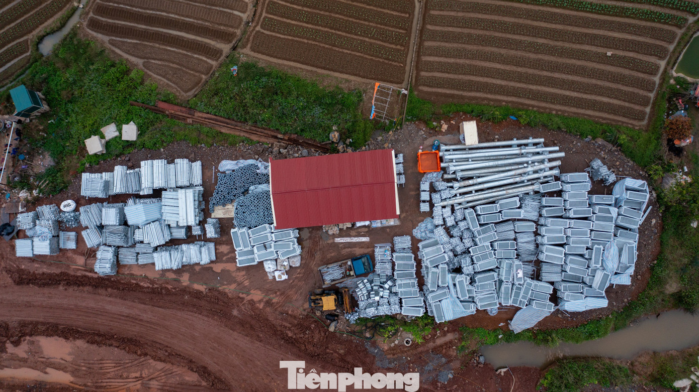 Cùng với đó, vật liệu phụ vụ hoàn thiện tuyến đường như hộ lan, rào phân cách, cột đèn, biển báo chỉ dẫn... đã được nhà thầu tập kết ngay tại chân công trình.