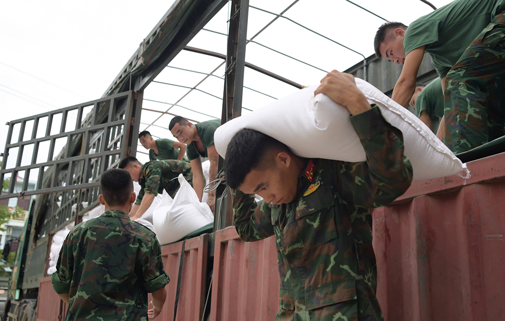 Lực lượng Quân đội hỗ trợ vận chuyển 2.000 tấn gạo hỗ trợ cho các gia đình bị ảnh hưởng do mưa lũ trên địa bàn tỉnh Lạng Sơn.