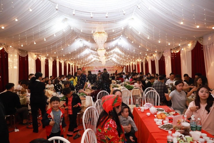 Sự gắn kết cộng đồng thể hiện qua các rạp cỗ chung của tổ dân phố.