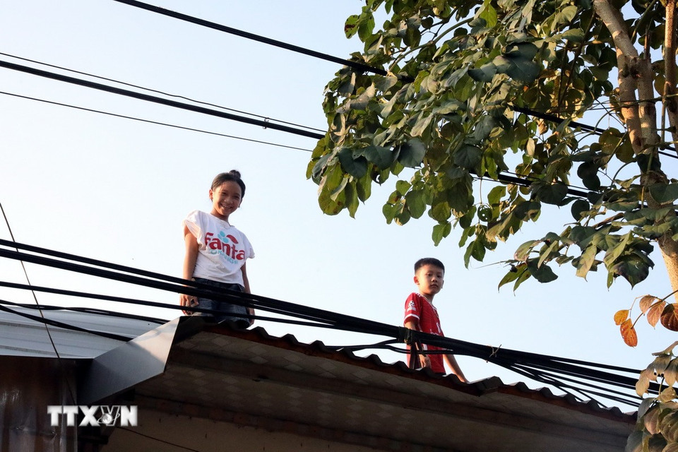 Một số gia đình ở xã Vân Nham, tỉnh Lạng Sơn phải di chuyển lên tầng cao, mái nhà để tránh lũ. (Ảnh: Văn Đạt/TTXVN)