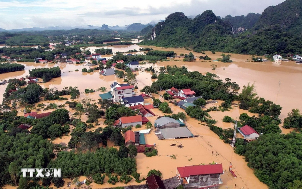 Ngập lụt lịch sử tại xã Vân Nham, tỉnh Lạng Sơn. (Ảnh: TTXVN phát)