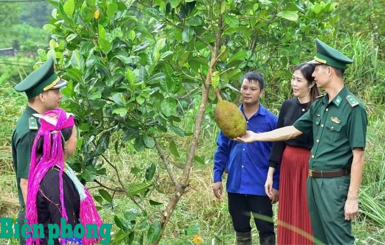 Cán bộ Đồn Biên phòng Bắc Sơn, Bộ đội Biên phòng tỉnh Quảng Ninh triển khai mô hình “Vườn cây kiểu mẫu” giúp dân phát triển kinh tế - xã hội. Ảnh: Đơn vị cung cấp
