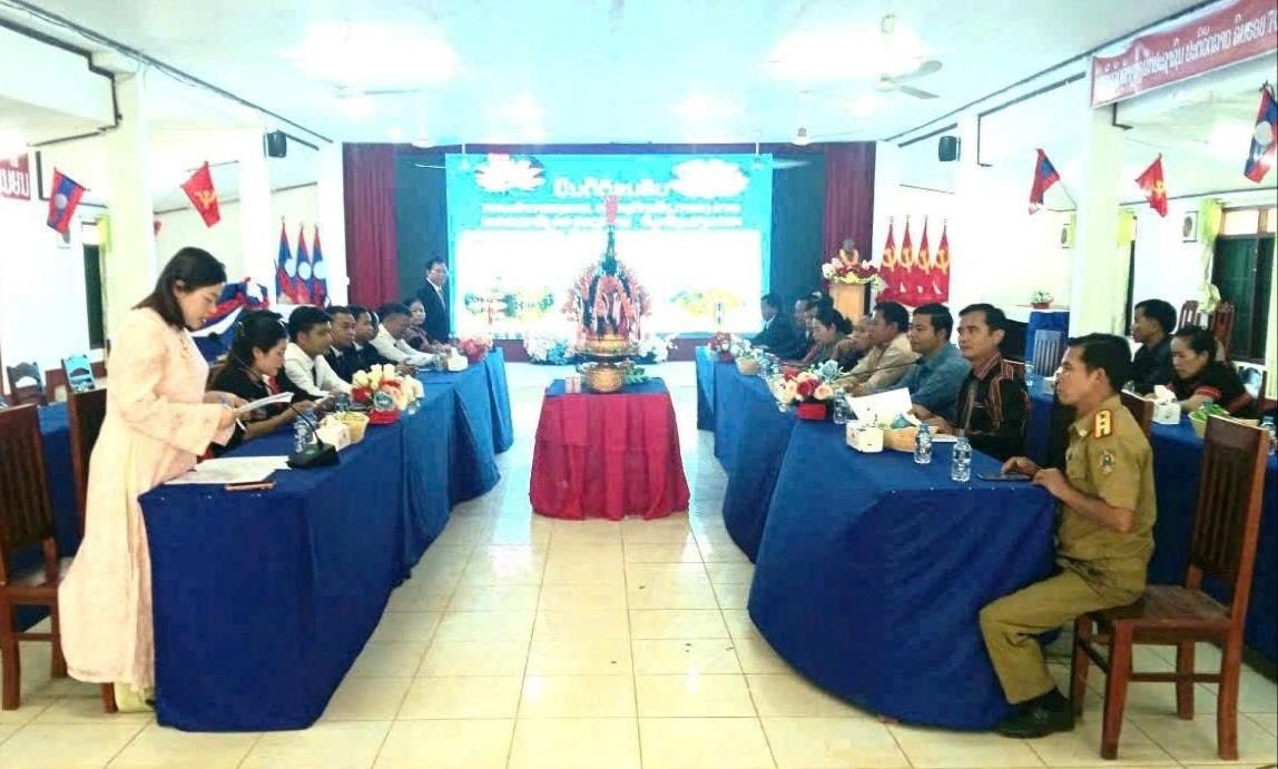 Đoàn công tác 3 xã biên giới La Dêê, La Êê, Đắc Pring chúc Tết cổ truyền Bunpimay tại huyện Đắc Chưng, tỉnh Sekong-Lào. Ảnh: ANH KHOA