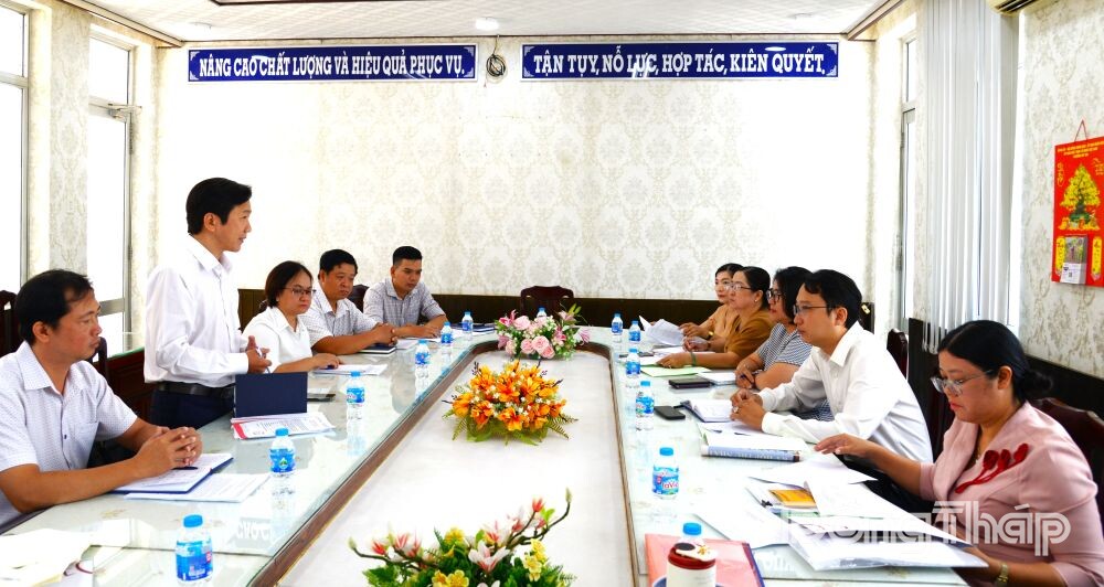 Đồng chí Nguyễn Trọng Tấn, Phó Tổng Biên tập Báo và phát thanh, truyền hình Đồng Tháp phát biểu tại buổi làm việc.
