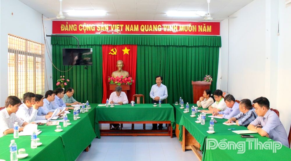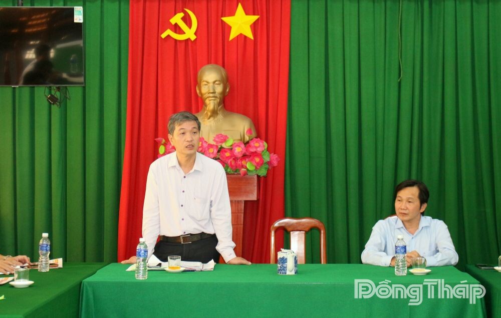 Phó Tổng Biên tập Báo và phát thanh, truyền hình Đồng Tháp Nguyễn Trọng Tấn phát biểu tại buổi làm việc với lãnh đạo Đảng ủy, UBND xã Long Định.