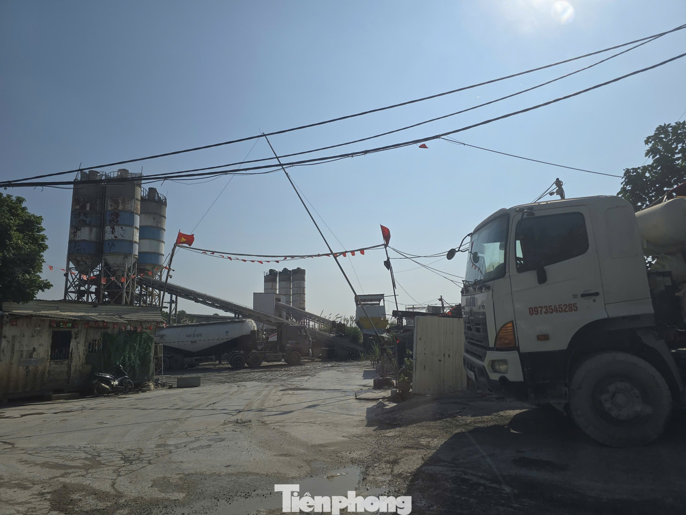 Tuy nhiên tại khu vực cảng Khuyến Lương, 2 trạm trộn bê tông sát sông Hồng hiện vẫn hoạt động tấp nập, xe bê tông ra vào liên tục lấy hàng. Nhiều xe bồn gắn logo: Bê tông Hoàng Minh; Bê tông Hợp Thành; Bê tông Khuyến Lương; Bê tông Chèm… nối đuôi nhau ra vào khu vực có trạm trộn. Tuyến đường dẫn vào các trạm trộn, nhà xưởng lầy lội bùn đất.