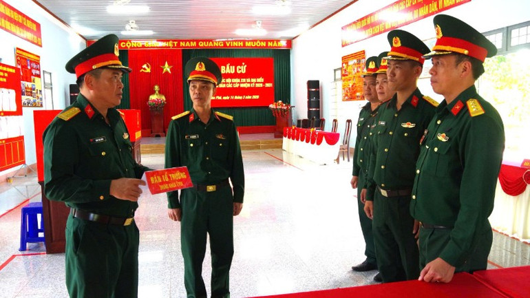 Đoàn công tác kiểm tra công tác chuẩn bị bầu cử tại Tiểu đoàn 303, Trung đoàn 584.