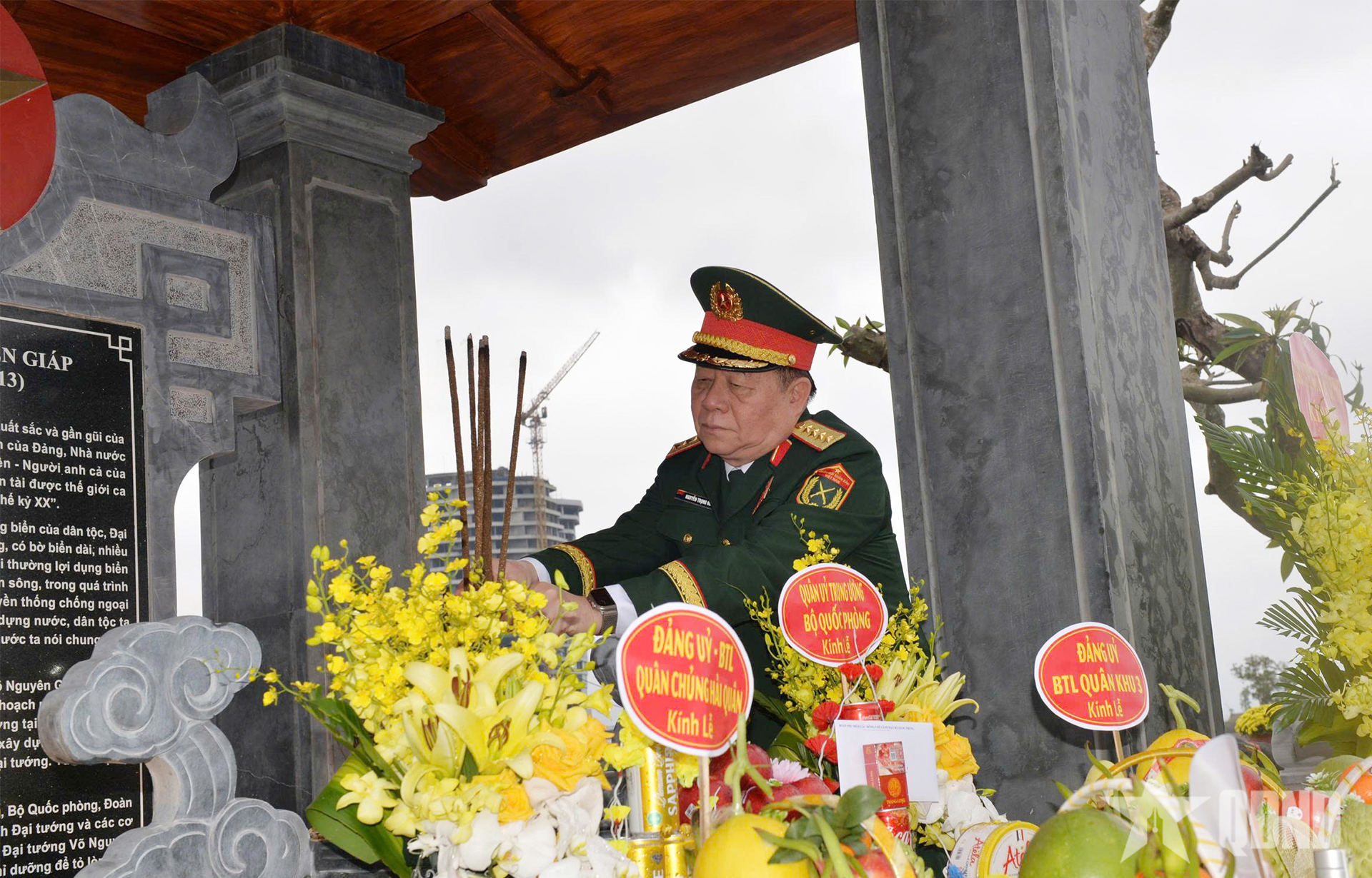 Tại đây, Đại tướng Phan Văn Giang, Ủy viên Bộ Chính trị, Phó bí thư Quân ủy Trung ương, Bộ trưởng Bộ Quốc phòng và Đại tướng Nguyễn Trọng Nghĩa, Ủy viên Bộ Chính trị, Bí thư Trung ương Đảng, Ủy viên Thường vụ Quân ủy Trung ương, Chủ nhiệm Tổng cục Chính trị, cùng các đồng chí lãnh đạo Bộ Quốc phòng đã thành kính tưởng niệm, bày tỏ tri ân đối với Đại tướng Võ Nguyên Giáp, người học trò xuất sắc, gần gũi của Chủ tịch Hồ Chí Minh; nhà lãnh đạo có uy tín lớn của Đảng, Nhà nước và nhân dân ta; vị Đại tướng, Tổng Tư lệnh đầu tiên văn võ song toàn, nhà quân sự lỗi lạc, được thế giới ngợi ca là một trong những danh tướng vĩ đại nhất thế kỷ XX .