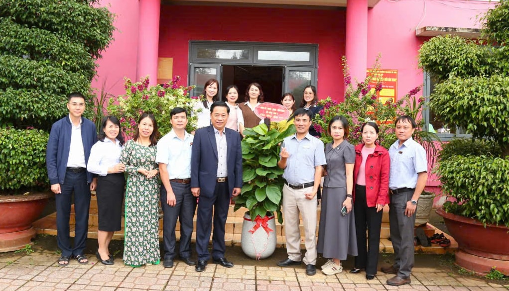 Đồng chí Nguyễn Đình Bình, Bí thư Đảng ủy xã Bảo Lâm 3 đến thăm và tặng hoa chúc mừng các thầy cô giáo