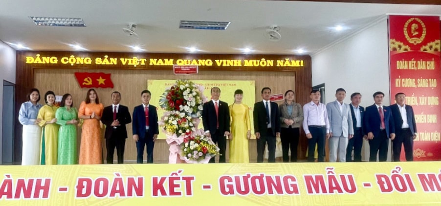 Đồng chí Phan Anh Tuấn, Bí thư Đảng ủy, Chủ tịch HĐND xã Bảo Lâm 2 đến thăm và tặng hoa chúc mừng các thầy cô giáo