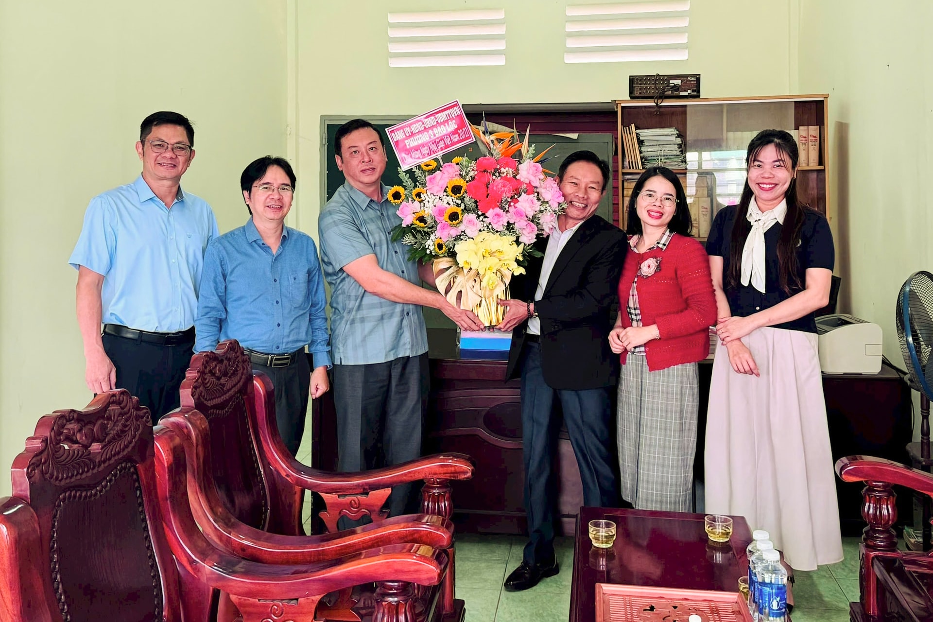 Đồng chí Ngô Văn Ninh, Bí thư Đảng ủy, Chủ tịch HĐND Phường 1 Bảo Lộc đến thăm và chúc mừng các thầy cô giáo