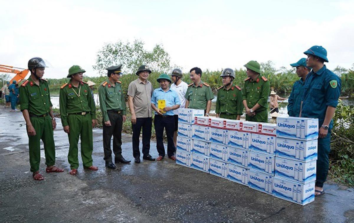 Thay mặt Ban Thường vụ Thành ủy Huế, Thiếu tướng Nguyễn Thanh Tuấn đã trao tặng quà động viên các lực lượng và nhân dân hai xã, thể hiện sự quan tâm, chia sẻ của lãnh đạo thành phố đối với lực lượng tuyến đầu đang trực tiếp giúp dân khắc phục hậu quả sau thiên tai.