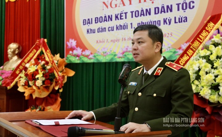 Phát biểu tại ngày hội, đồng chí Giám đốc Công an tỉnh ghi nhận và biểu dương những kết quả nổi bật mà khu dân cư Khối 1, phường Kỳ Lừa đạt được trong thời gian qua. Để phát huy hơn nữa sức mạnh của khối đại đoàn kết toàn dân, đồng chí đề nghị mỗi người dân, mỗi gia đình trên địa bàn cần phát huy và giữ gìn giá trị tốt đẹp của bản sắc dân tộc, tăng cường gắn kết cộng đồng, xây dựng gia đình văn hóa; tiếp tục đẩy mạnh việc học tập và làm theo tư tưởng, đạo đức, phong cách Hồ Chí Minh; phát huy tinh thần tự lực, tự cường, chủ động, tích cực lao động, sản xuất, phát triển kinh tế bền vững.