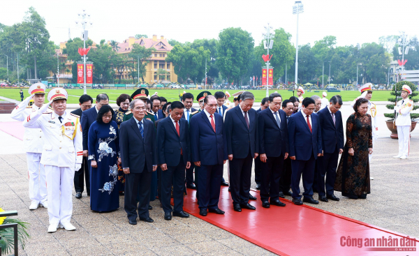 Tổng Bí thư, Chủ tịch nước Tô Lâm dẫn đầu Đoàn đại biểu đến đặt vòng hoa, vào Lăng viếng Chủ tịch Hồ Chí Minh.