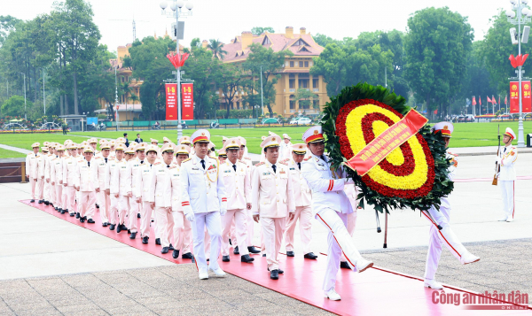 Trước anh linh Chủ tịch Hồ Chí Minh, Đoàn đại biểu Đảng ủy Công an Trung ương, Bộ Công an bày tỏ lòng thành kính, biết ơn vô hạn trước những công lao to lớn của Người đối với sự nghiệp cách mạng vẻ vang của Đảng và dân tộc Việt Nam nói chung, với lực lượng CAND nói riêng; nguyện phấn đấu đi theo con đường mà Chủ tịch Hồ Chí Minh và Đảng ta đã lựa chọn; phát huy truyền thống anh hùng, vẻ vang, xây dựng lực lượng CAND tuyệt đối trung thành với Đảng, Nhà nước và nhân dân; xây dựng tổ chức bộ máy tinh gọn, hoạt động hiệu lực, hiệu quả, xứng đáng là “thanh bảo kiếm” của Đảng, “lá chắn thép” vững vàng trong đấu tranh với các loại tội phạm, bảo đảm an ninh quốc gia, giữ gìn trật tự, an toàn xã hội, vì cuộc sống bình yên và hạnh phúc của nhân dân.