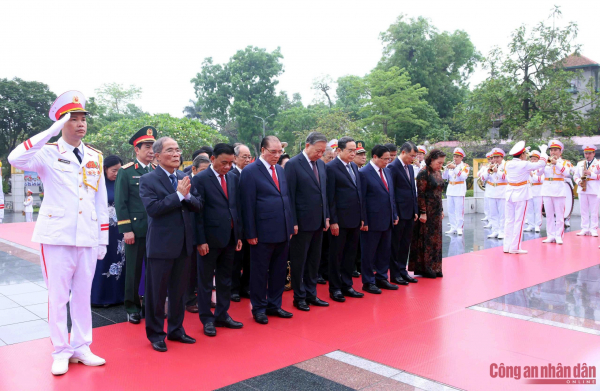 Tổng Bí thư, Chủ tịch nước Tô Lâm và các đồng chí lãnh đạo, nguyên lãnh đạo Đảng, Nhà nước thành kính tưởng nhớ các Anh hùng liệt sĩ.