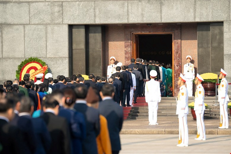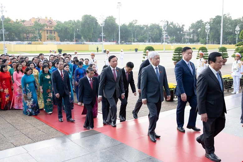 Sáng 20/10, lãnh đạo Đảng, Nhà nước, Quốc hội cùng các Đại biểu Quốc hội đặt vòng hoa và vào viếng Lăng Chủ tịch Hồ Chí Minh trước khi khai mạc Kỳ họp thứ 10, Quốc hội khóa XV.