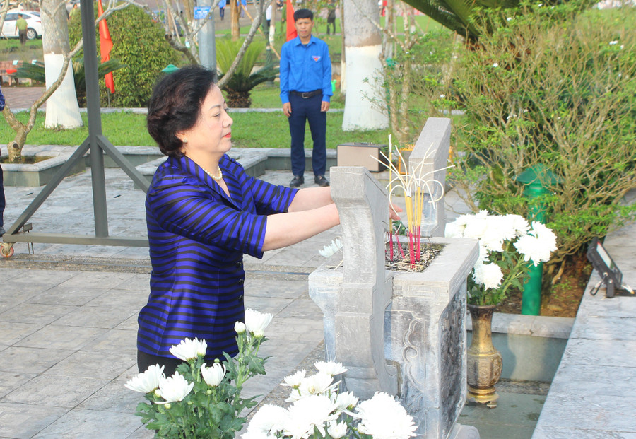 Phó Thủ tướng Chính phủ Phạm Thị Thanh Trà dâng hương tại khu mộ Anh hùng liệt sĩ Lý Tự Trọng.