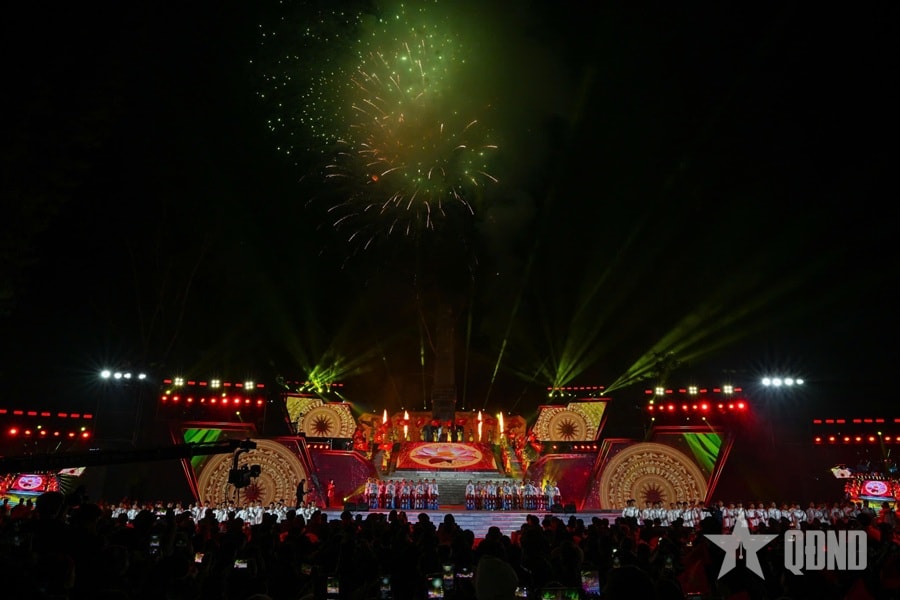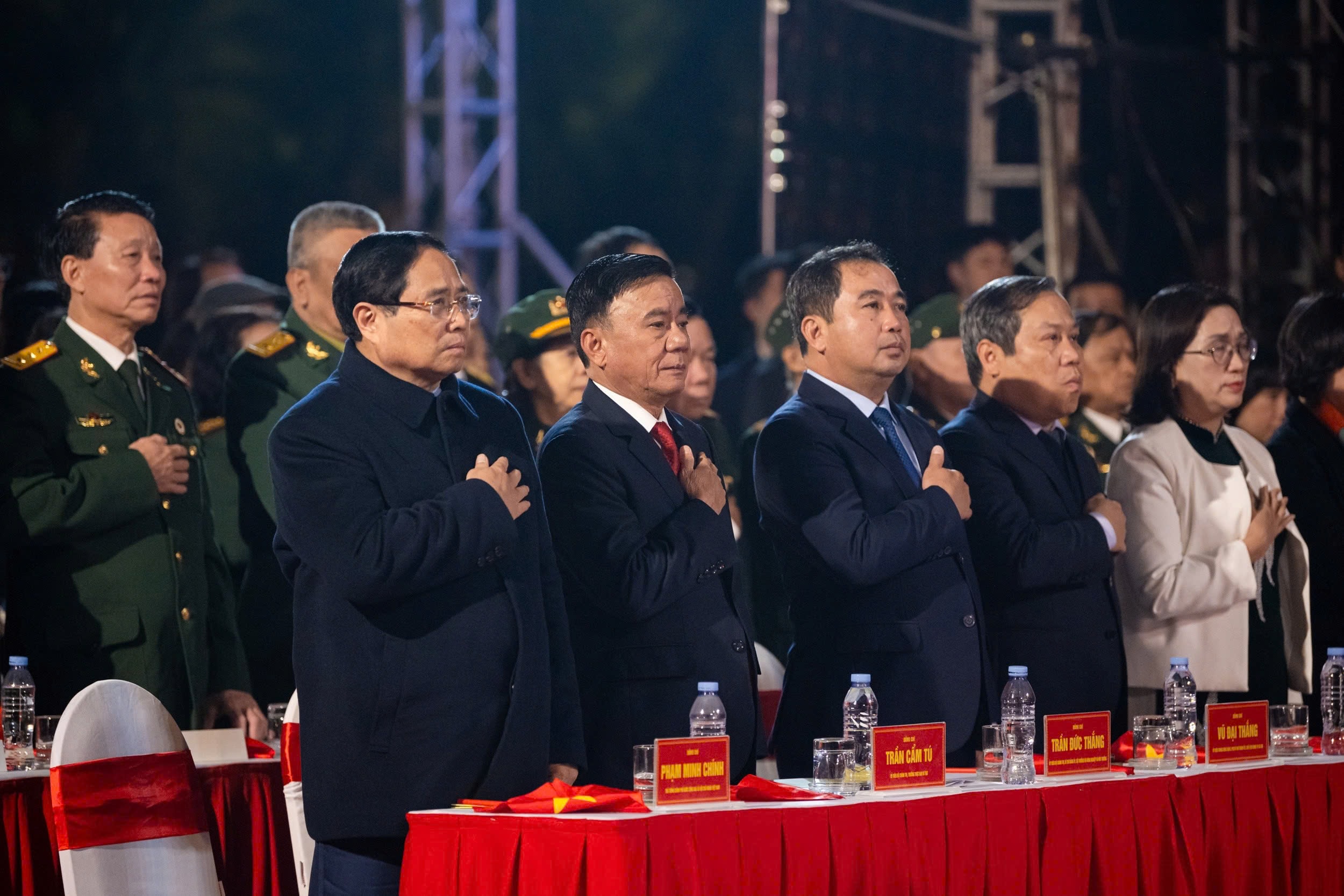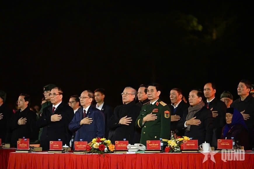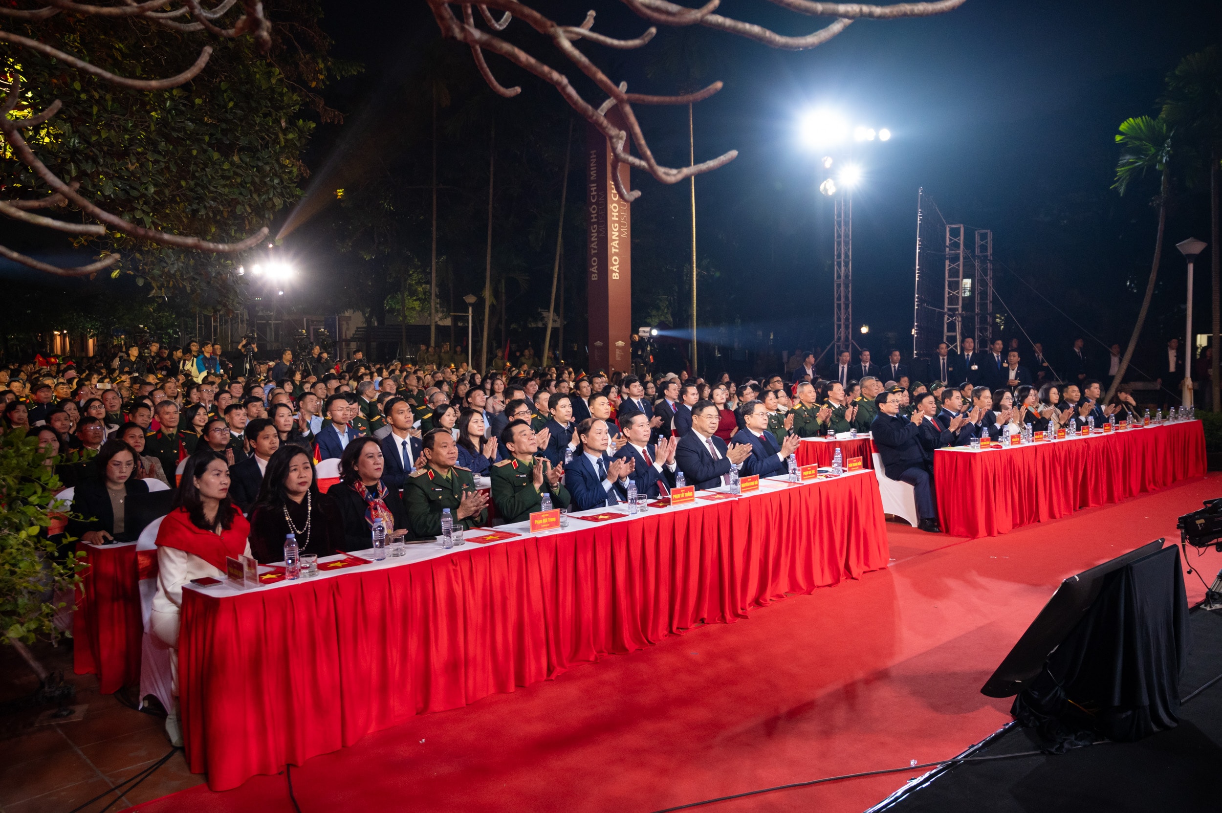 Tổng Bí thư Tô Lâm cùng các đồng chí lãnh đạo Đảng, Nhà nước dự chương trình. Nguồn: qdnd.vn