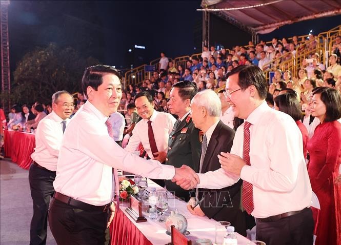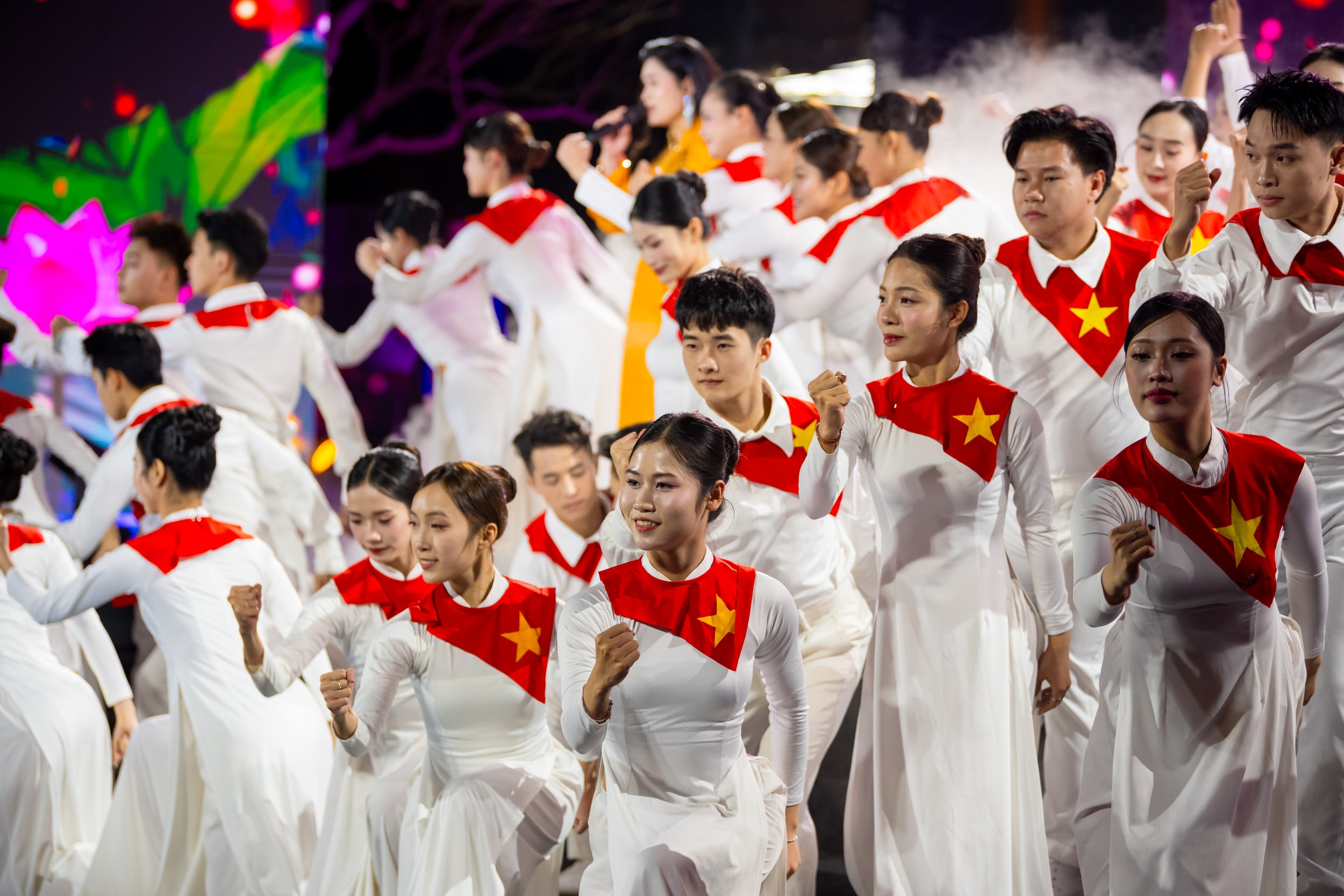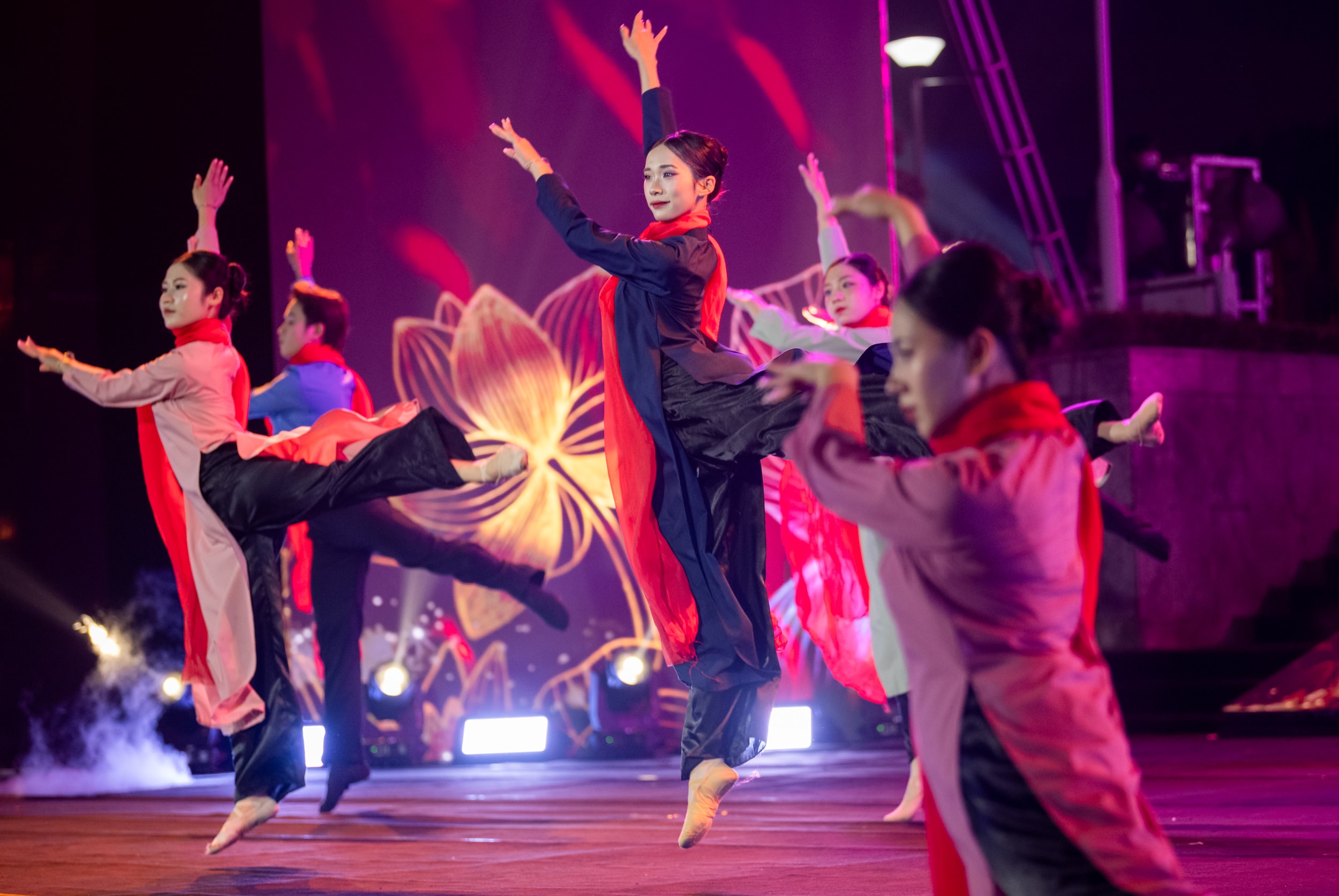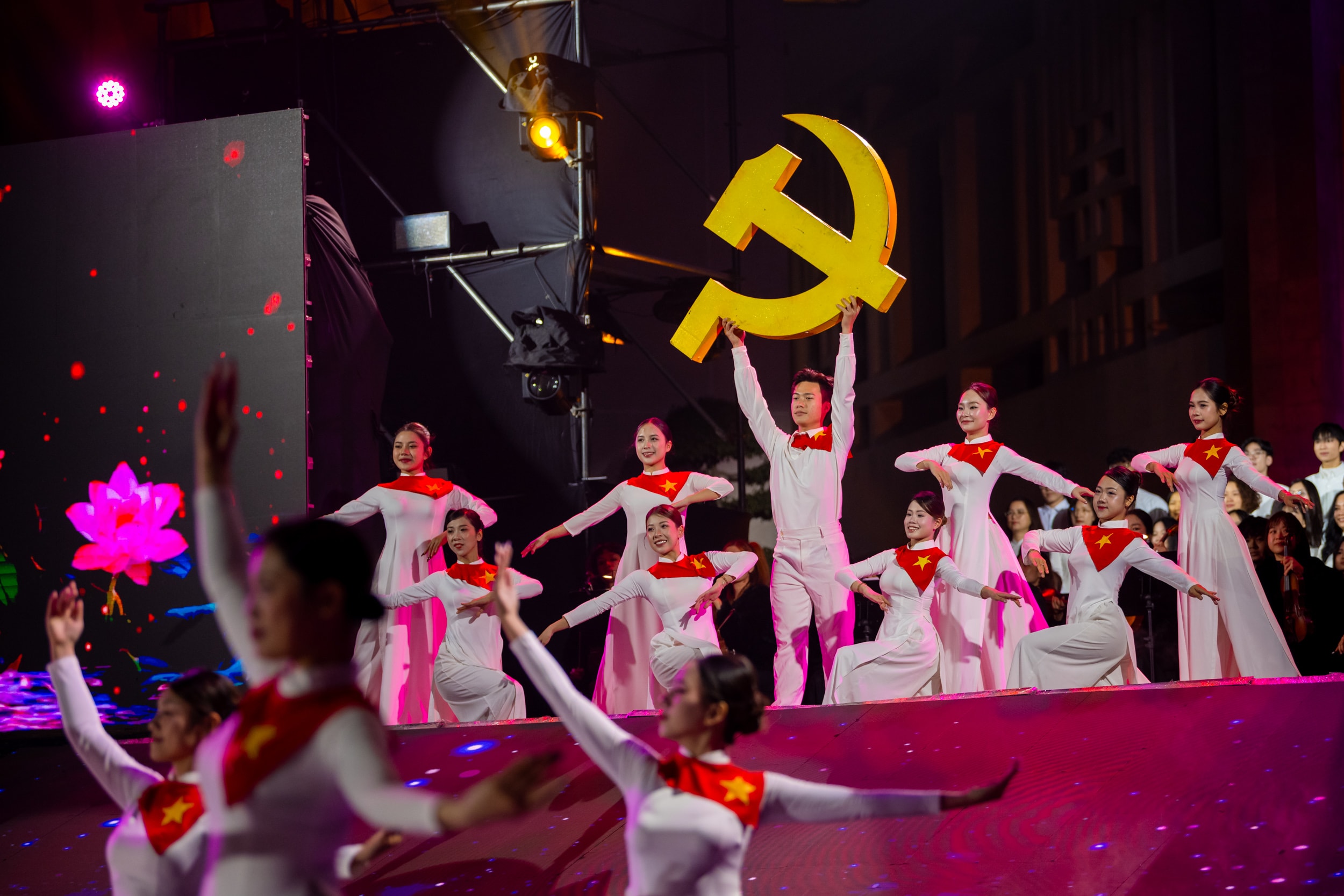 Chương trình văn nghệ tại điểm cầu Bến cảng Nhà Rồng, Thành phố Hồ Chí Minh. Ảnh: Lâm Khánh - TTXVN