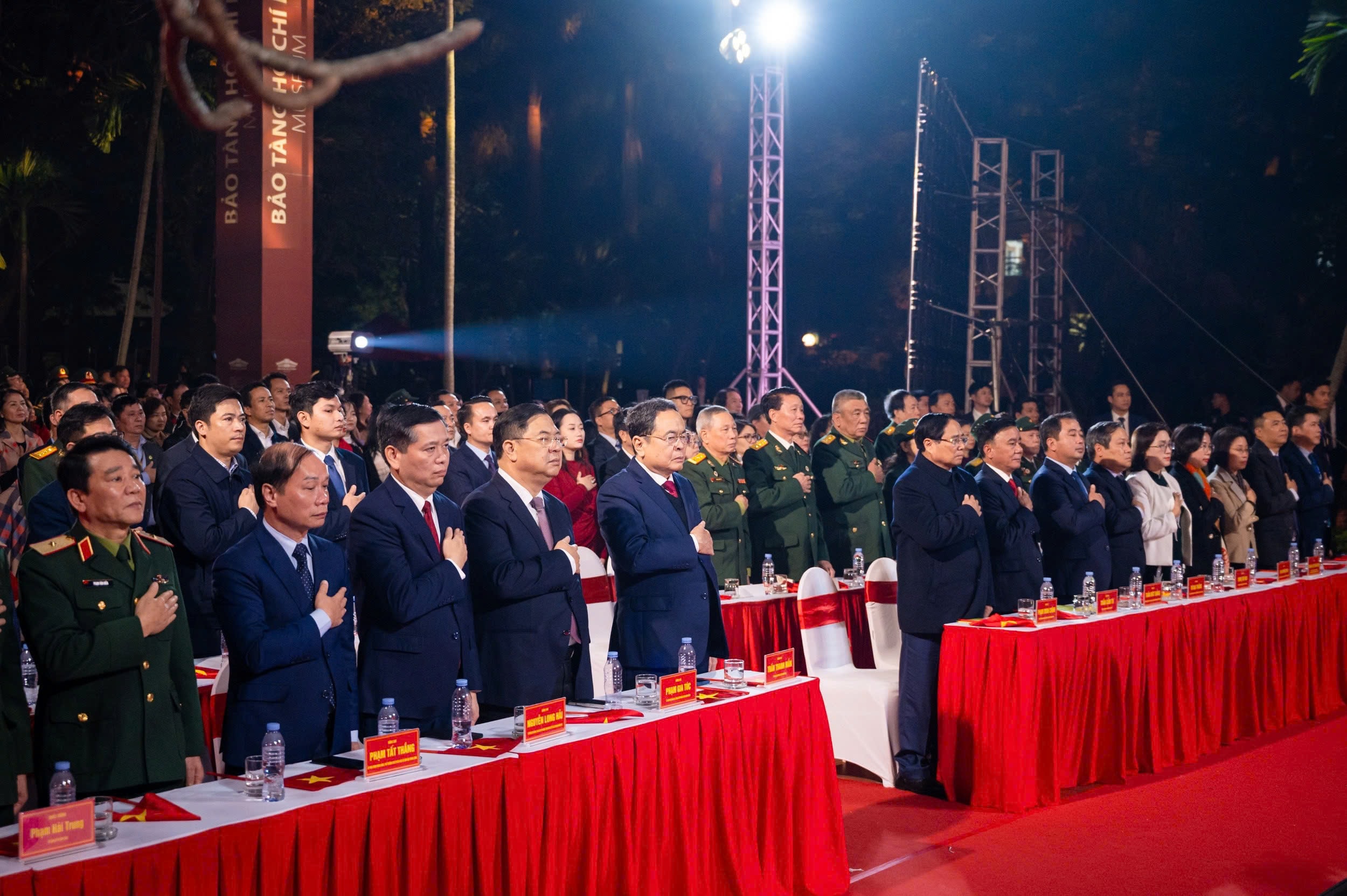 Thủ tướng Chính phủ Phạm Minh Chính, Chủ tịch Quốc hội Trần Thanh Mẫn dự chương trình ở điểm cầu Bảo tàng Hồ Chí Minh, phường Ba Đình, Hà Nội. Ảnh: Phạm Thắng