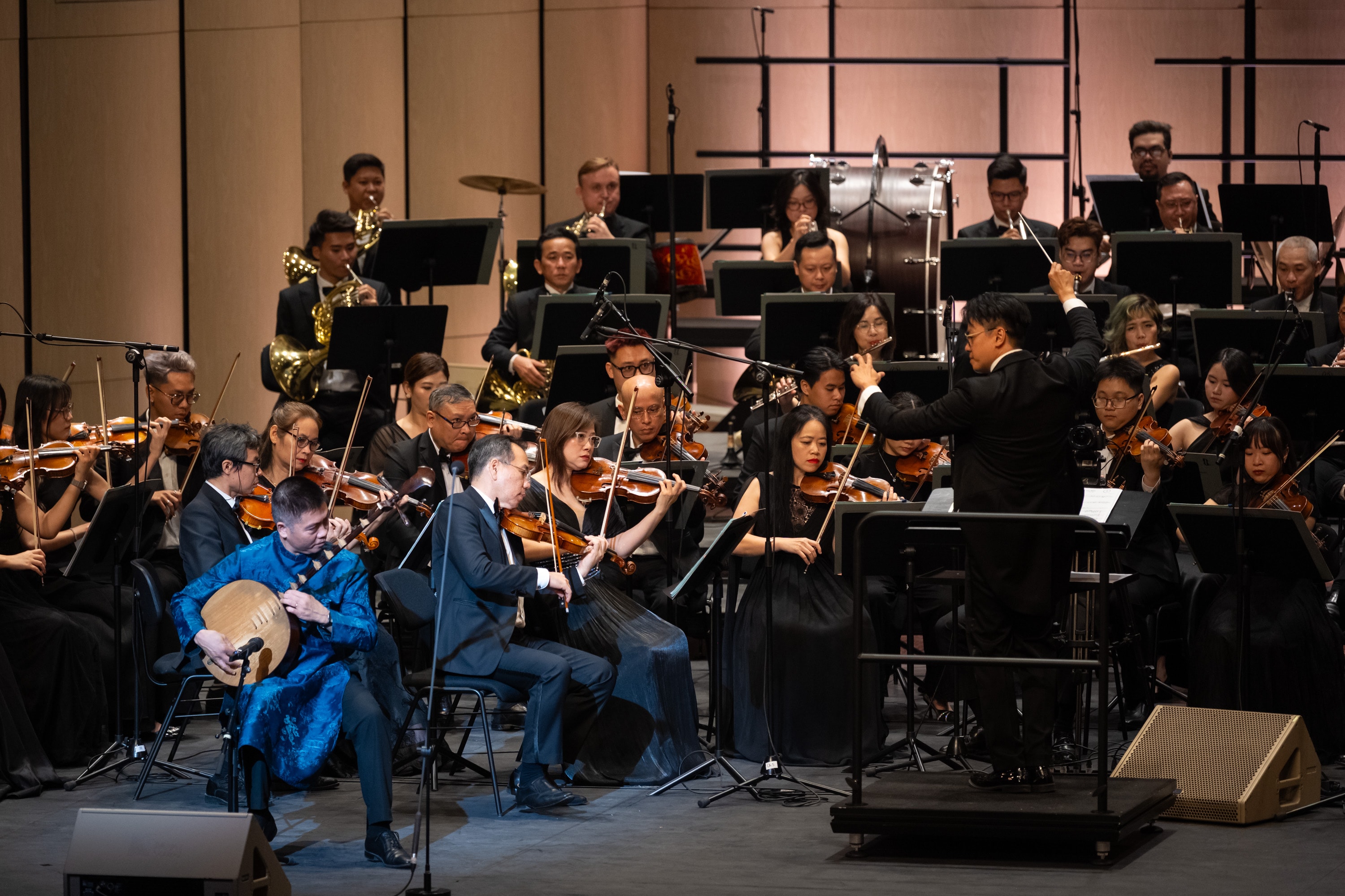 Chương trình được thực hiện với sự tham gia biểu diễn của NSND Cồ Huy Hùng, NSƯT Bùi Lệ Chi, NSƯT Nguyễn Hoàng Anh, Lê Thị Ngọc Hà, Cho Hea Ryong, Trường Linh, Trần Nguyễn Kim Ngân, cùng các nghệ sĩ đến từ Nhà hát Ca múa nhạc CAND, Hợp xướng Nhà hát Nhạc Vũ kịch Việt Nam, Dàn nhạc Giao hưởng Hà Nội dưới sự chỉ huy của Nhạc trưởng Trần Nhật Minh; phần độc tấu Violin của NSND Bùi Công Duy, Giám đốc Dàn nhạc Giao hưởng Hà Nội, Phó Giám đốc Học viện Âm nhạc Quốc gia Việt Nam.