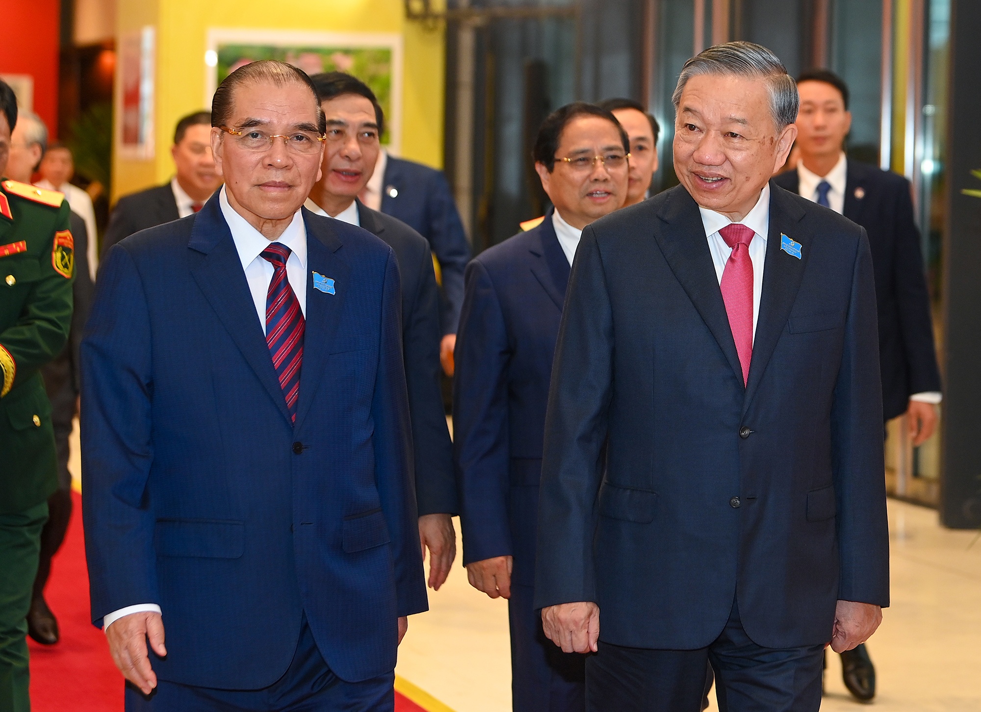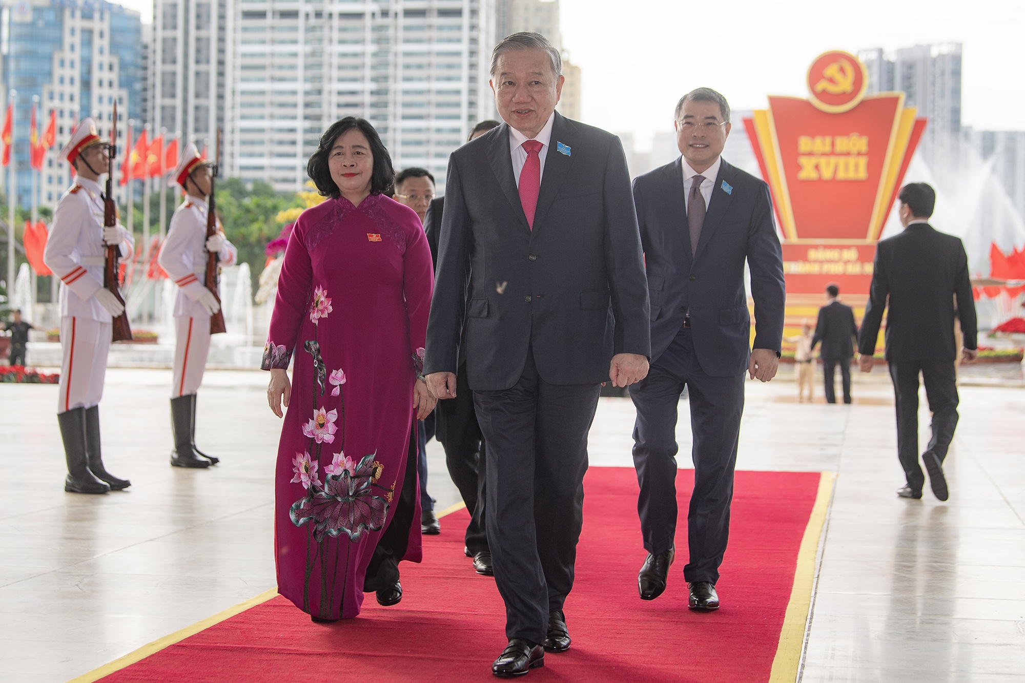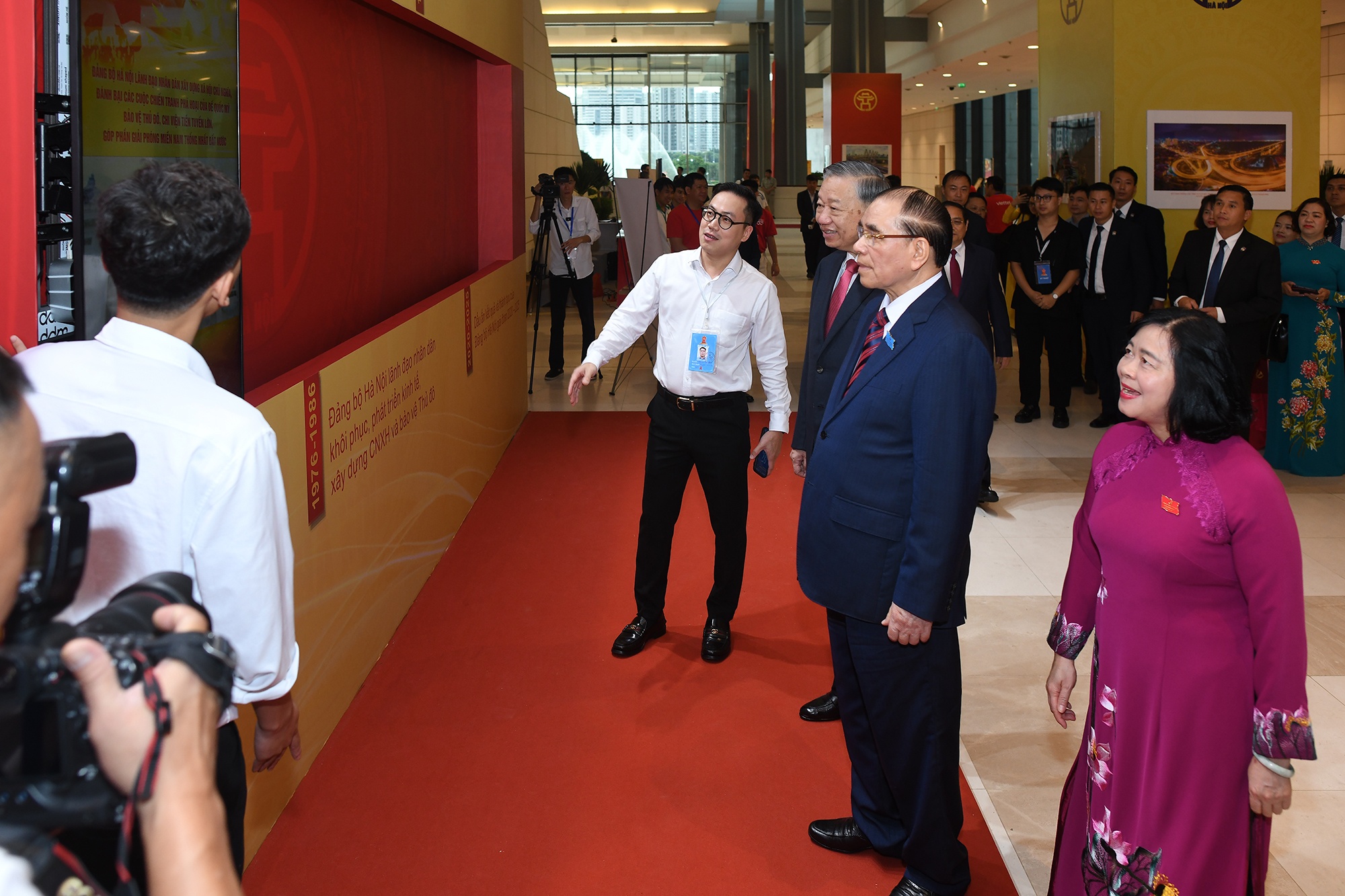 Tổng Bí thư Tô Lâm cùng các lãnh đạo, nguyên lãnh đạo Đảng, Nhà nước và của TP Hà Nội qua các thời kỳ đến dự phiên khai mạc.