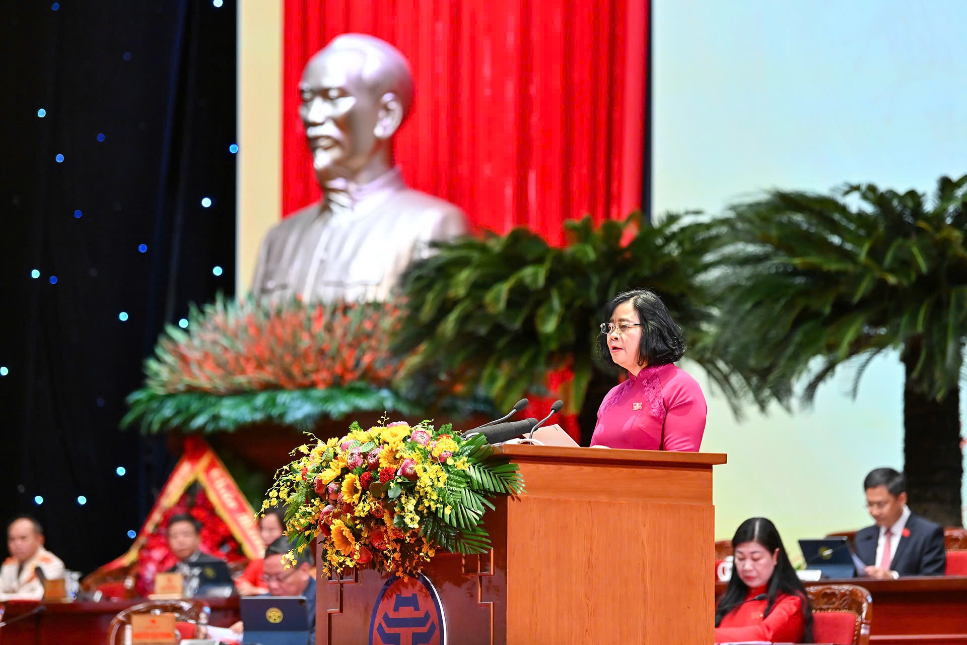 Bí thư Thành ủy Hà Nội Bùi Thị Minh Hoài phát biểu khai mạc Đại hội. Ảnh: Văn Thanh