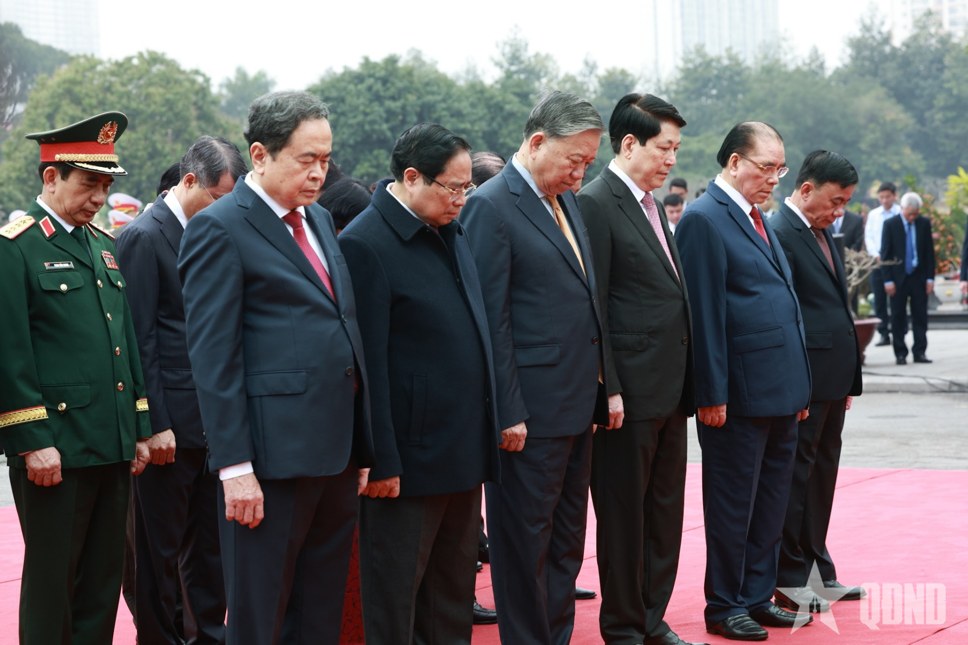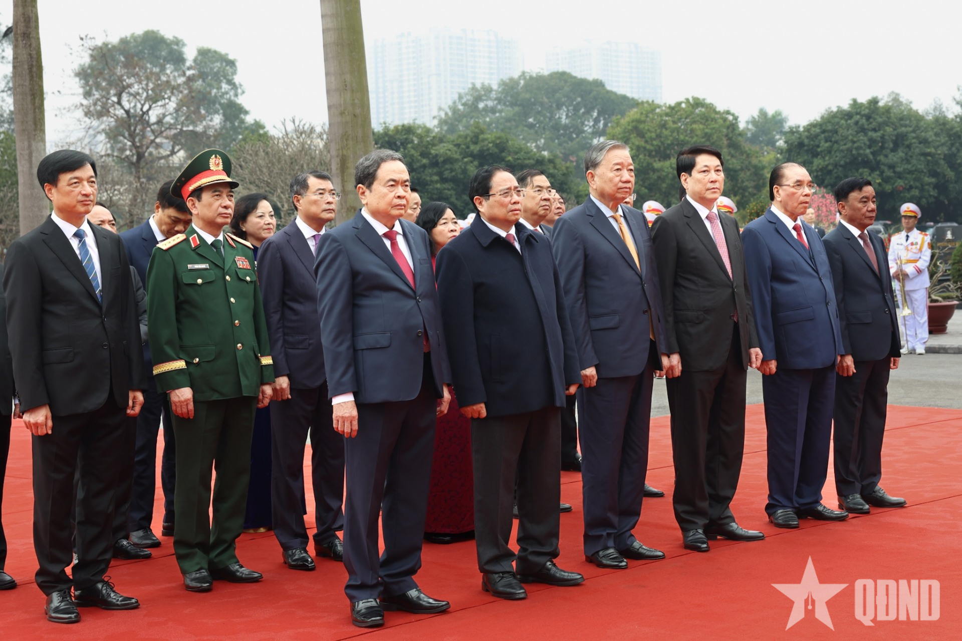 Cùng tham gia đoàn viếng có Đại tướng Phan Văn Giang, Ủy viên Bộ Chính trị, Phó bí thư Quân ủy Trung ương, Bộ trưởng Bộ Quốc phòng; Trịnh Văn Quyết, Ủy viên Bộ Chính trị, Bí thư Trung ương Đảng, Trưởng ban Tuyên giáo và Dân vận Trung ương...; các đồng chí Ủy viên Bộ Chính trị, nguyên Ủy viên Bộ Chính trị, Bí thư Trung ương Đảng, nguyên Bí thư Trung ương Đảng; lãnh đạo các ban, bộ, ngành, đoàn thể Trung ương, TP Hà Nội.