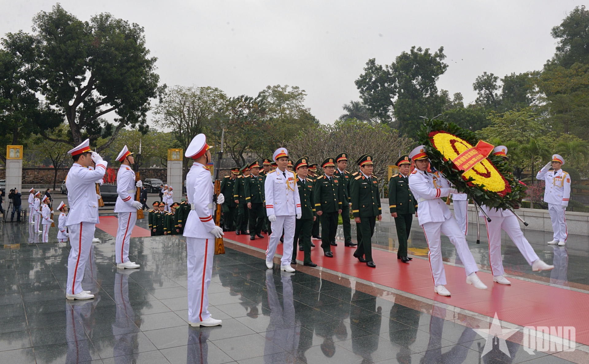 Đoàn đại biểu Quân ủy Trung ương, Bộ Quốc phòng đặt vòng hoa, vào Lăng viếng Chủ tịch Hồ Chí Minh.