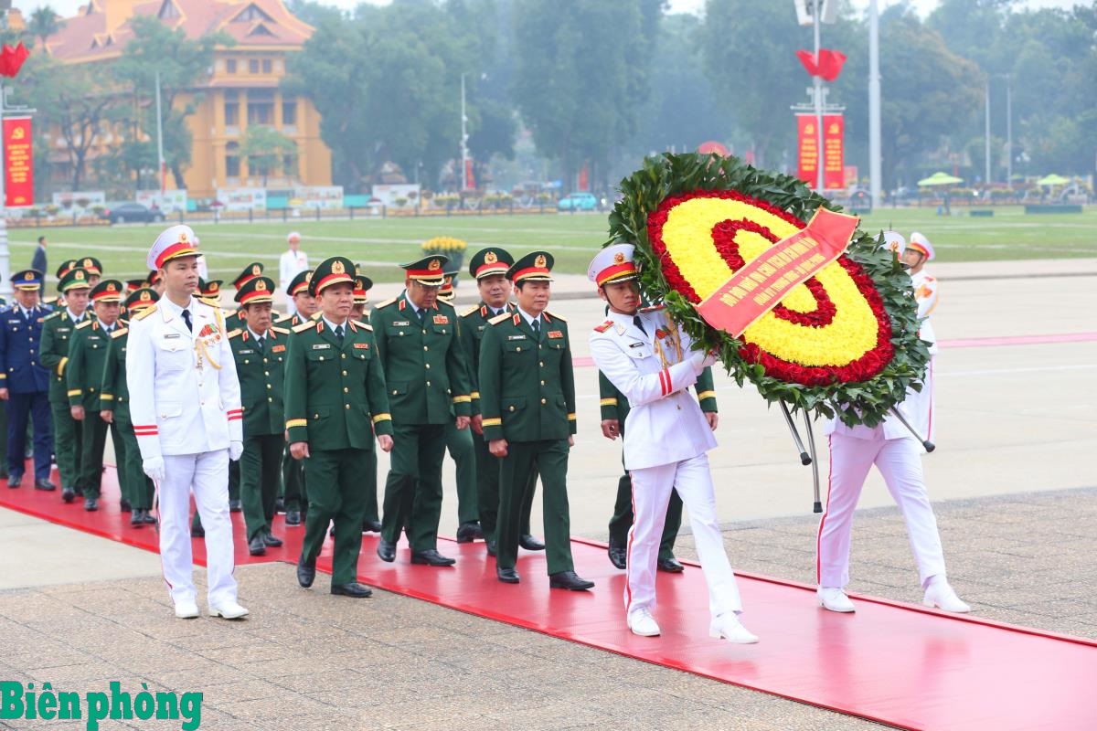Đoàn đại biểu Quân ủy Trung ương - Bộ Quốc phòng do Đại tướng Nguyễn Tân Cương, Ủy viên Trung ương Đảng, Ủy viên Thường vụ Quân ủy Trung ương, Bộ trưởng Bộ Quốc phòng làm Trưởng đoàn đến đặt vòng hoa, vào Lăng viếng Chủ tịch Hồ Chí Minh.