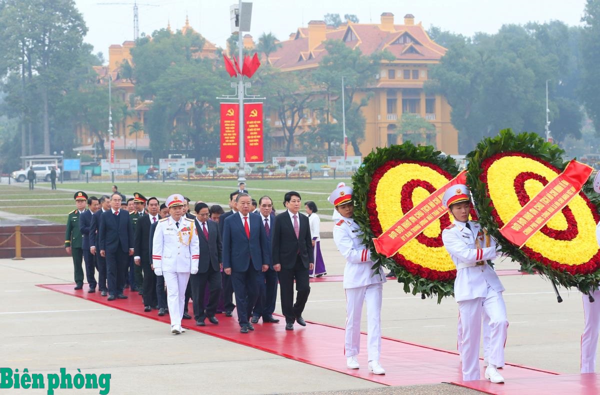 Đoàn đại biểu lãnh đạo Đảng, Nhà nước đến đặt vòng hoa, vào Lăng viếng Chủ tịch Hồ Chí Minh. Ảnh: Hồng Pha