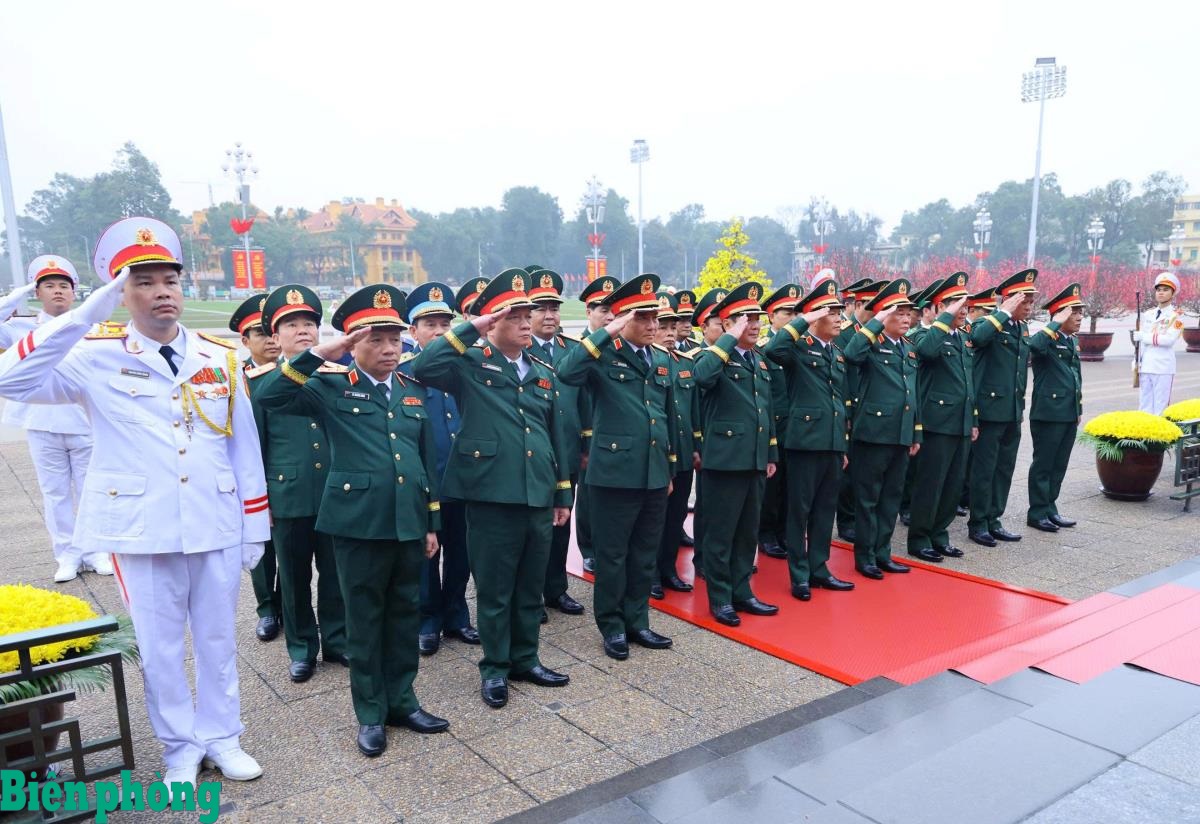 Đoàn đại biểu Quân ủy Trung ương, Bộ Quốc phòng đặt vòng hoa và vào Lăng viếng Chủ tịch Hồ Chí Minh. Ảnh: Hồng Pha
