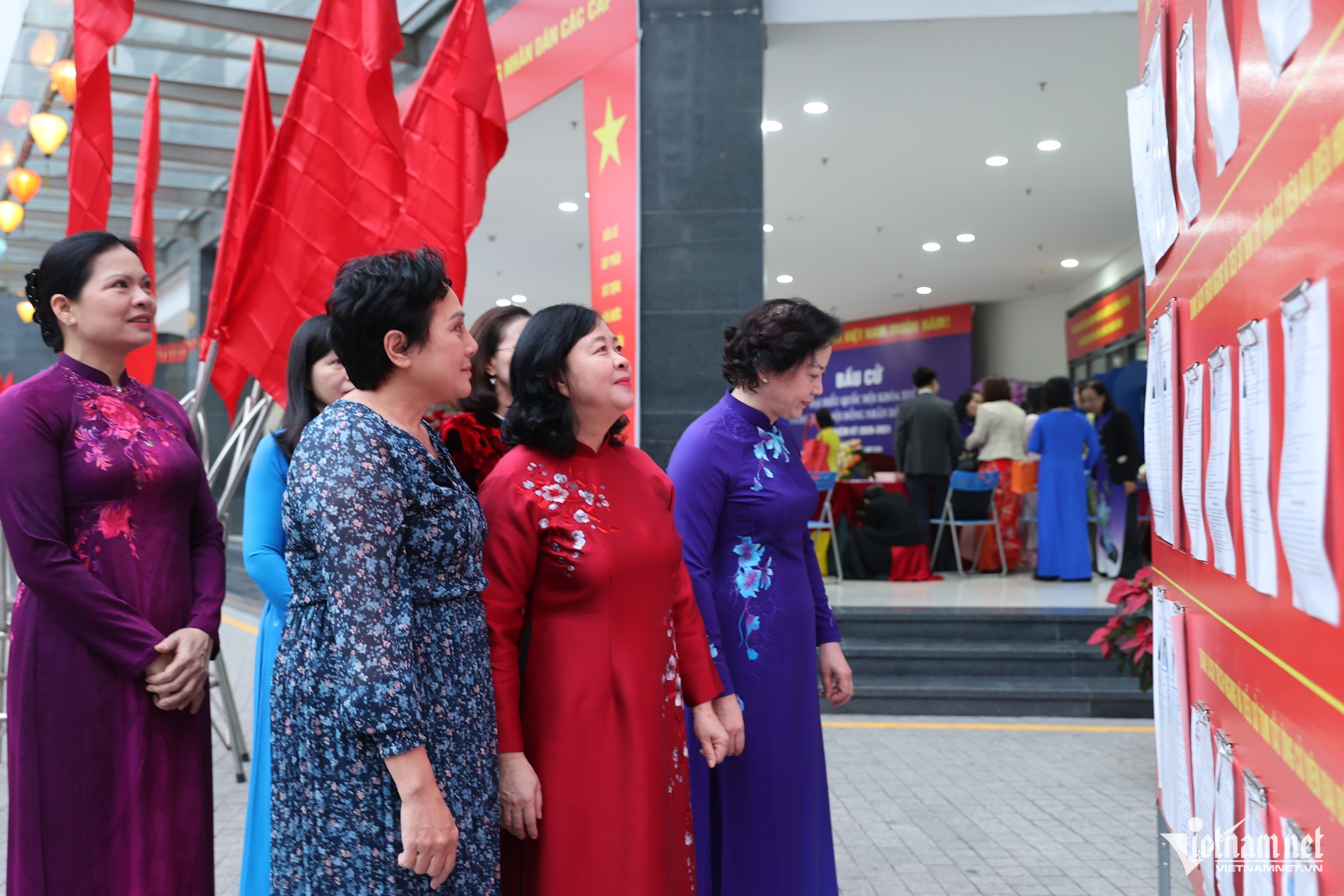6h15, bà Bùi Thị Minh Hoài, Ủy viên Bộ Chính trị, Chủ tịch Ủy ban Trung ương MTTQ Việt Nam cùng các lãnh đạo Trung ương có mặt tại Khu vực bổ phiếu số 7, phường Xuân Đỉnh
