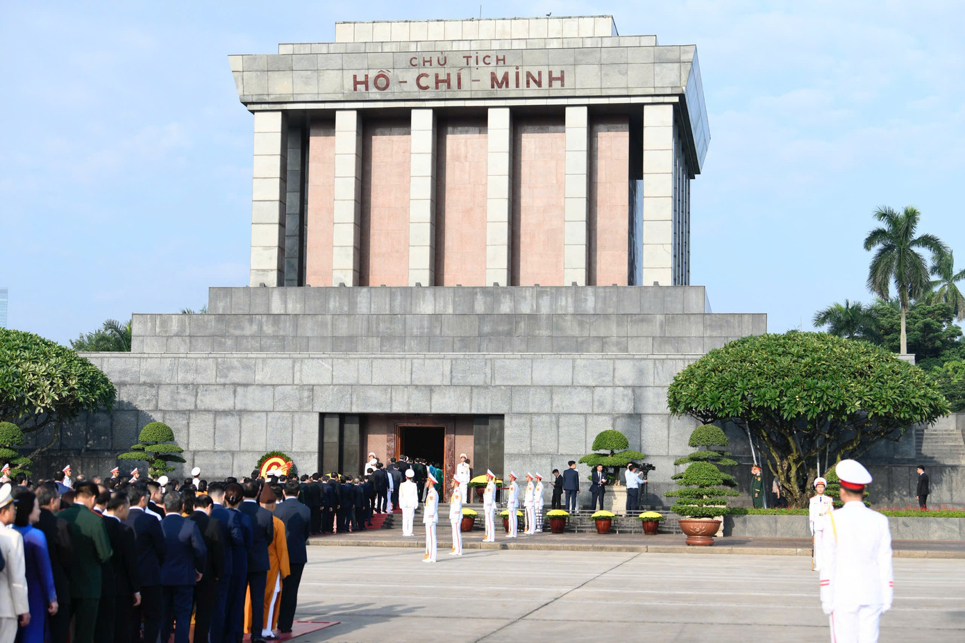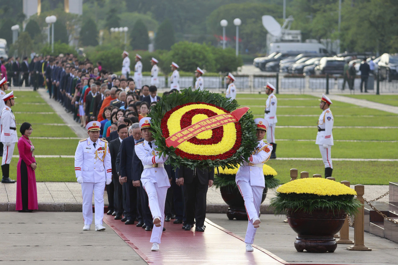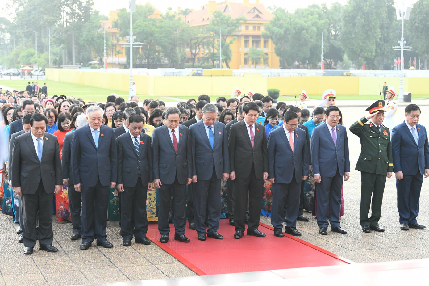 Tổng Bí thư Tô Lâm, Chủ tịch nước Lương Cường, Thủ tướng Chính phủ Phạm Minh Chính, Chủ tịch Quốc hội Trần Thanh Mẫn cùng lãnh đạo Đảng, Nhà nước, Mặt trận Tổ quốc Việt Nam, các đại biểu Quốc hội tưởng nhớ công lao to lớn của Chủ tịch Hồ Chí Minh.