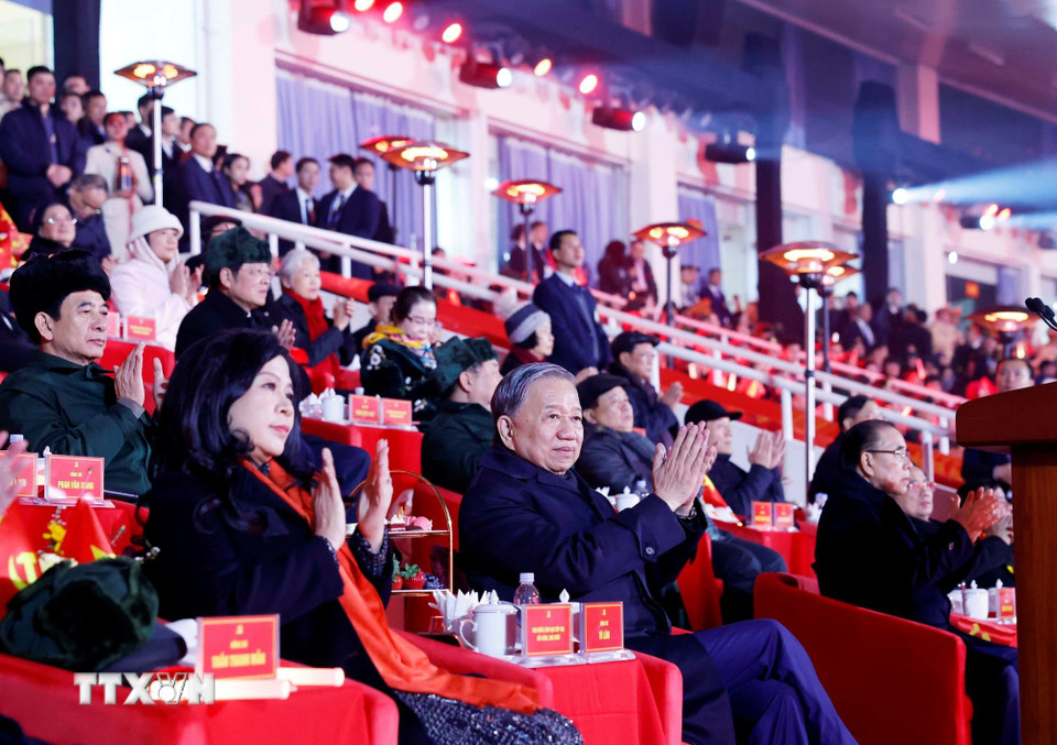 Tổng Bí thư Tô Lâm dự chương trình nghệ thuật đặc biệt ”Dưới lá cờ vẻ vang của Đảng.” (Ảnh: TTXVN)