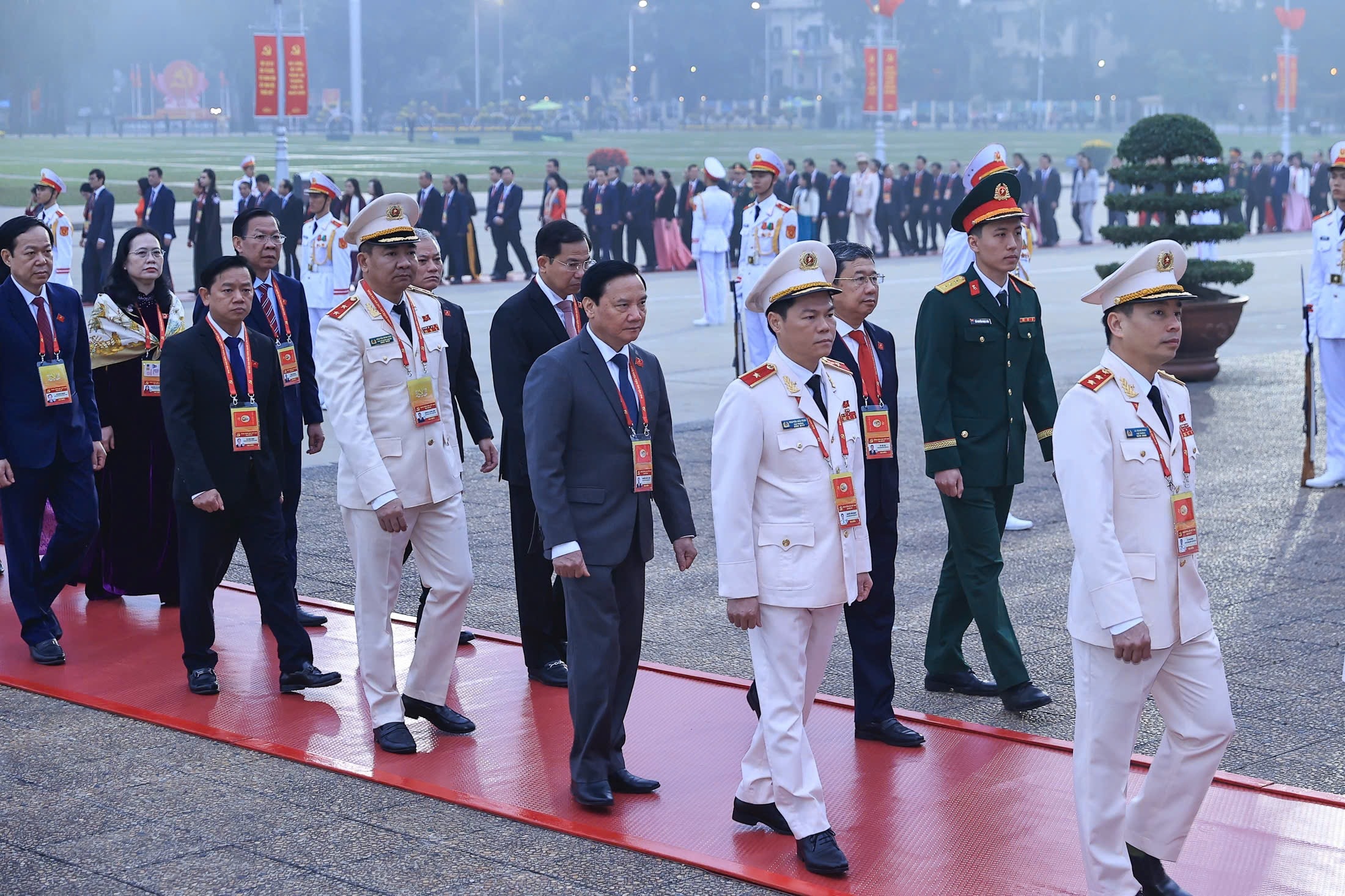 Các đại biểu dự Đại hội XIV của Đảng đặt vòng hoa, viếng Chủ tịch Hồ Chí Minh. Ảnh: Nhật Bắc